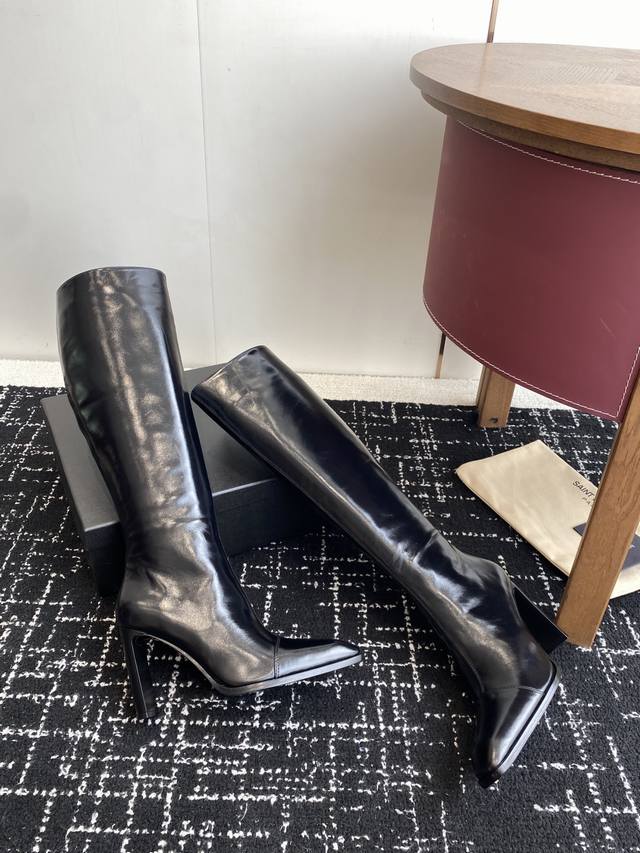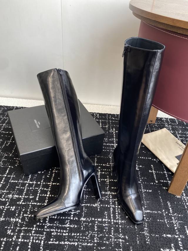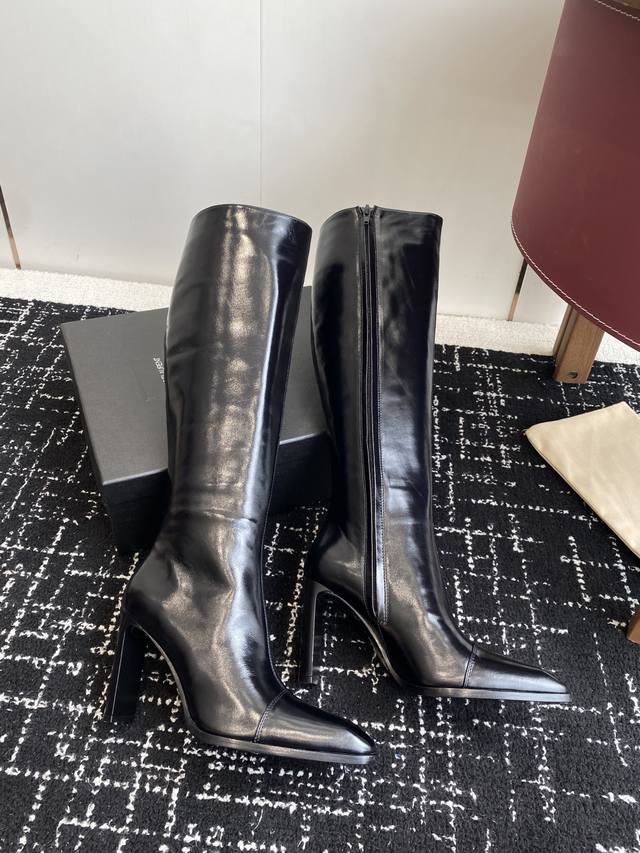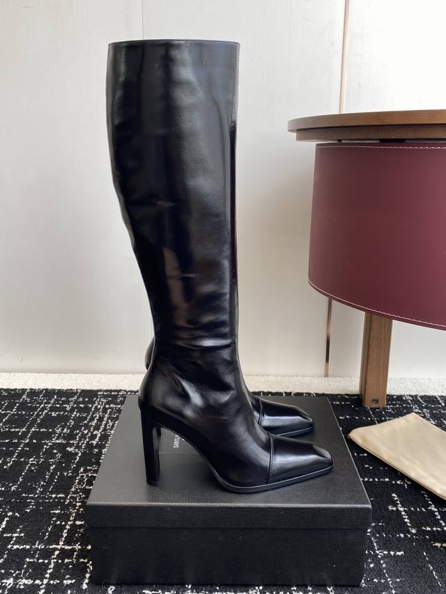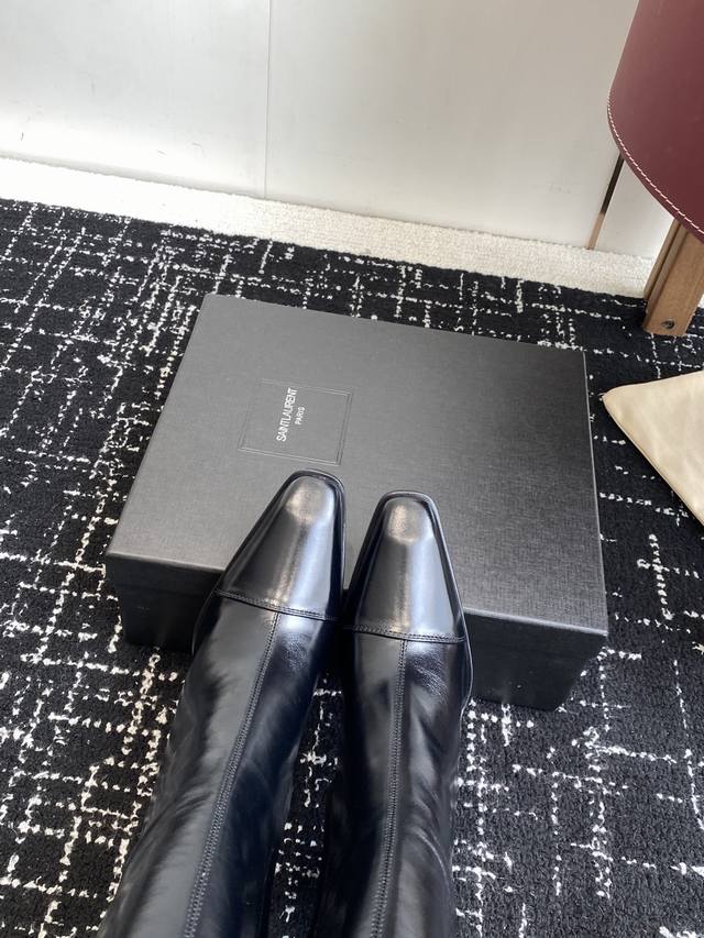 High-quality ankle boots (590 RMB) DDD Saint Laurent Fw25 New Arrival YSL Saint Laurent DDD 2025 Fall/Winter New Side Zipper High-Heeled Ankle Boots with Chunky Heel DDD Ankle boots featuring a square pointed toe and a tapered chunky heel, adorned with Le Cassandre on the inner side, and a side zipper closure. DDD The entire shoe is very simple and elegant. The small square toe adds a touch of sophistication and style. The side of the boot is designed to conform to the natural curve of the leg, making it very flattering and suitable for all body types. It elongates the legs and is suitable for various occasions. A must-have item for fall and winter! DDD Upper: Cowhide Lining Insole: Sheepskin Outsole: Italian Grade A Genuine Leather Outsole DDD Heel Height: 9.5cm DDD Size: 35-39 40.41 Custom-made, no returns or exchanges DDD
