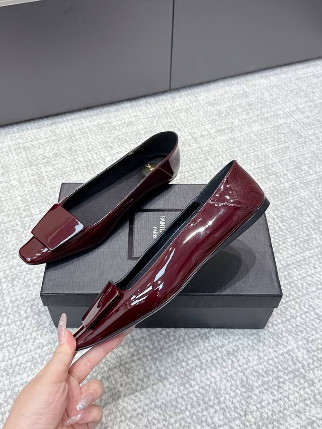 High-quality YSL 2025 Fall/Winter new square-toe fashion versatile single shoes. The iconic small logo is the soul of this shoe, presented on the upper with a low-key yet refined style. Unlike the ostentatious large logo, it is quiet yet eye-catching. Simple lines outline YSL's unique fashion sense, subtly revealing the brand's profound heritage. The classic almond-shaped design of the toe cleverly modifies the foot shape, visually lengthening the foot line and highlighting elegance and delicacy. Whether paired with simple wide-leg pants or a playful short skirt, it can easily showcase different styles. Material: Original cowhide leather; Lining: Original lining; Sole: Open mold sole; Sizes: 35-41.