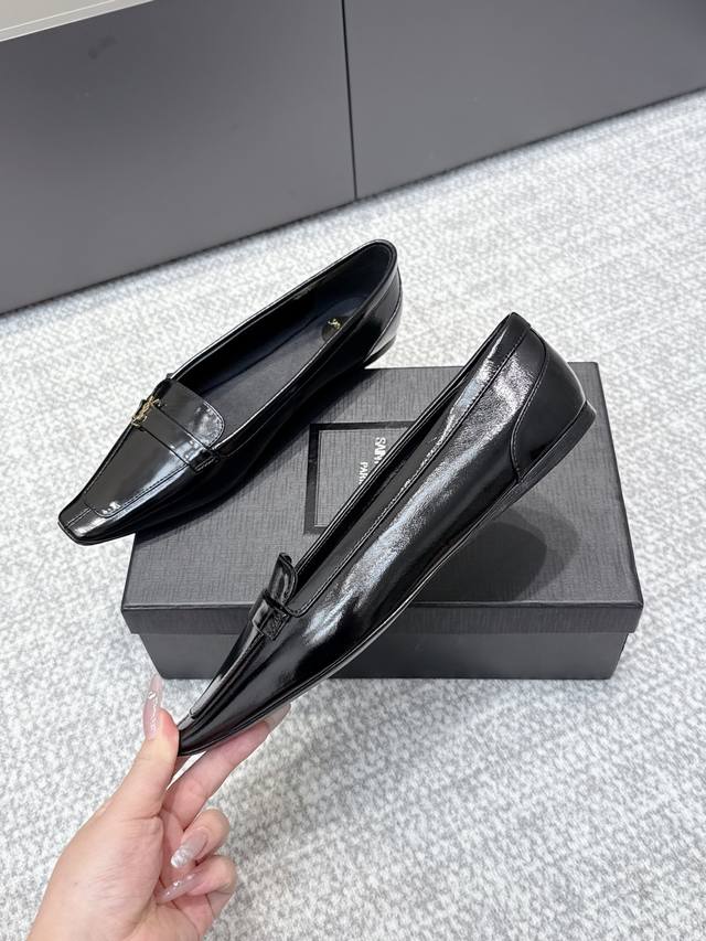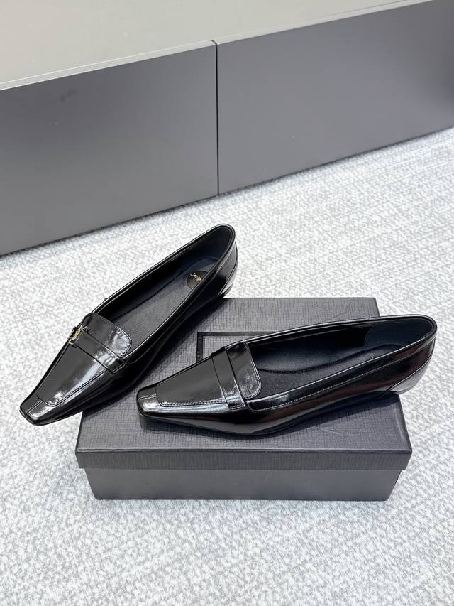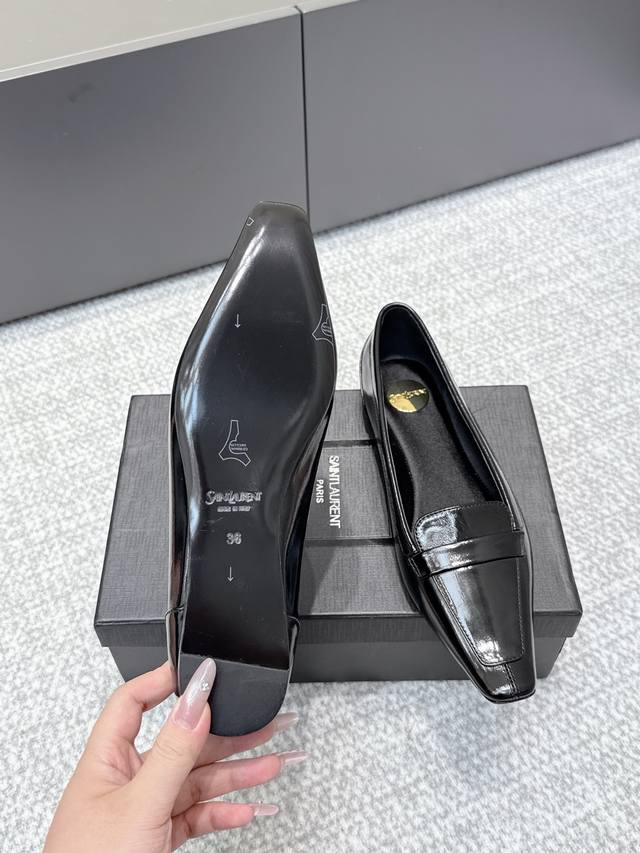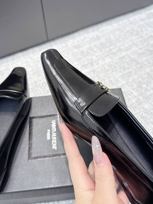High-quality YSL 2025 Fall/Winter new square-toe fashion versatile single shoes. The iconic small logo is the soul of this shoe, presented on the upper with a low-key yet refined style. Unlike the ostentatious large logo, it is quiet yet eye-catching. Simple lines outline YSL's unique fashion sense, subtly revealing the brand's profound heritage. The classic almond-shaped design of the toe cleverly modifies the foot shape, visually lengthening the foot line and highlighting elegance and delicacy. Whether paired with simple wide-leg pants or a playful short skirt, it can easily showcase different styles. Material: Original cowhide leather; Lining: Original lining; Sole: Open mold sole; Sizes: 35-41.