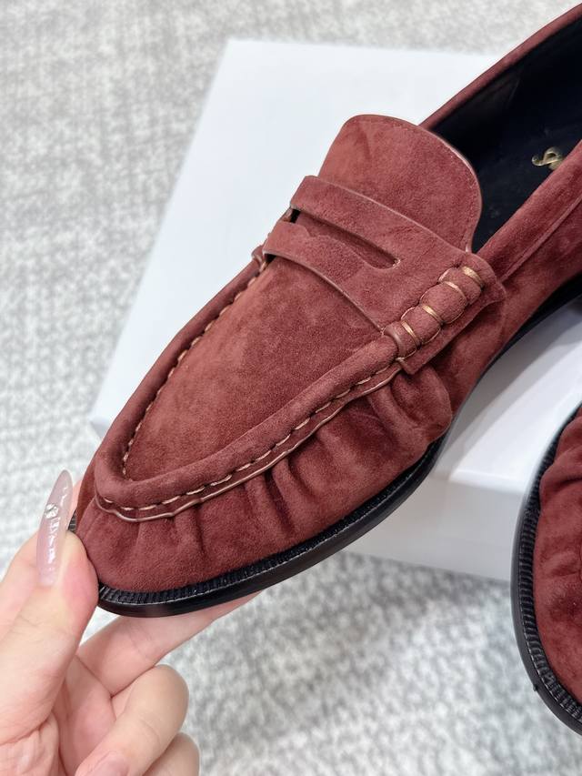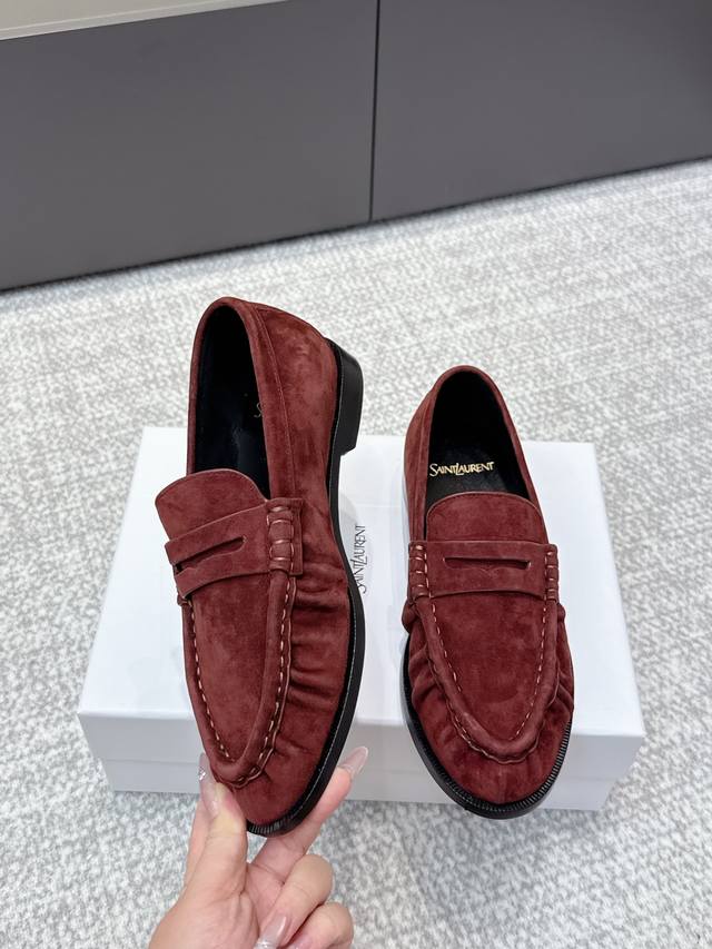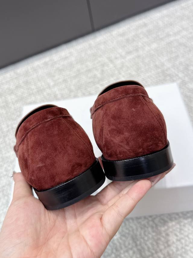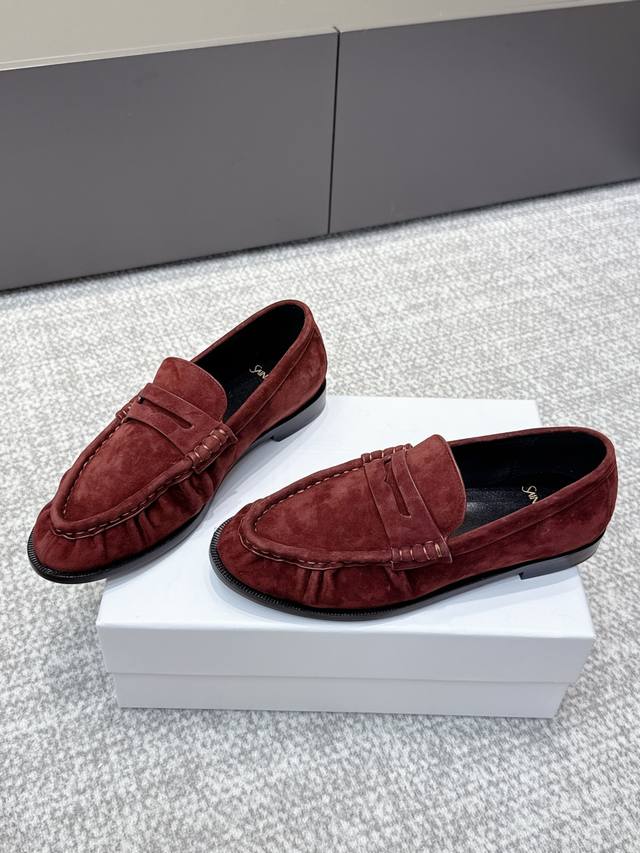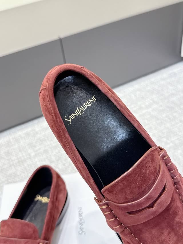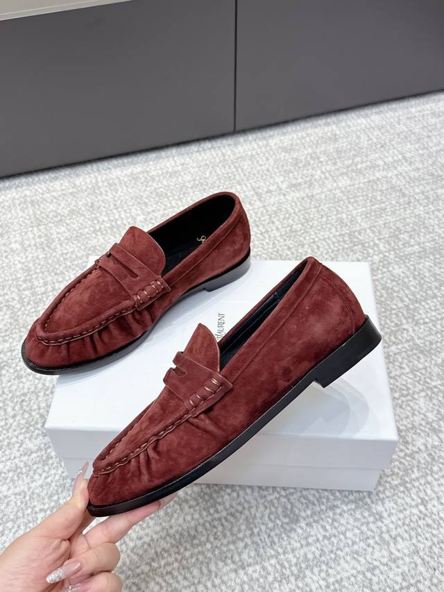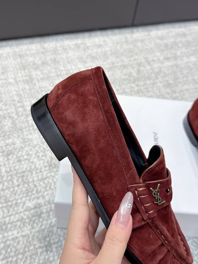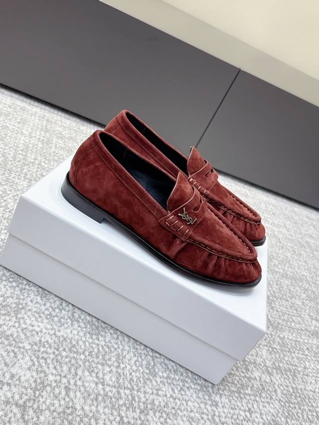 High-quality Yves Saint Laurent 25Ss new YSL small logo loafers. The iconic small logo is the soul of these shoes, presented with a low-key yet refined style. Unlike the ostentatious large logo, it is quiet yet eye-catching, outlining YSL's unique fashion with simple lines, subtly revealing the brand's profound heritage. The classic almond-shaped design of the toe cleverly flatters the foot shape, visually lengthening the foot line and highlighting elegance and delicacy. Whether paired with simple wide-leg pants or a playful mini skirt, it can easily showcase different styles, becoming the finishing touch to any outfit. Material: Original custom leather; Lining: Sheepskin insole; Outsole: Italian imported genuine leather; Size: 35-39, 40, 41 (customized).