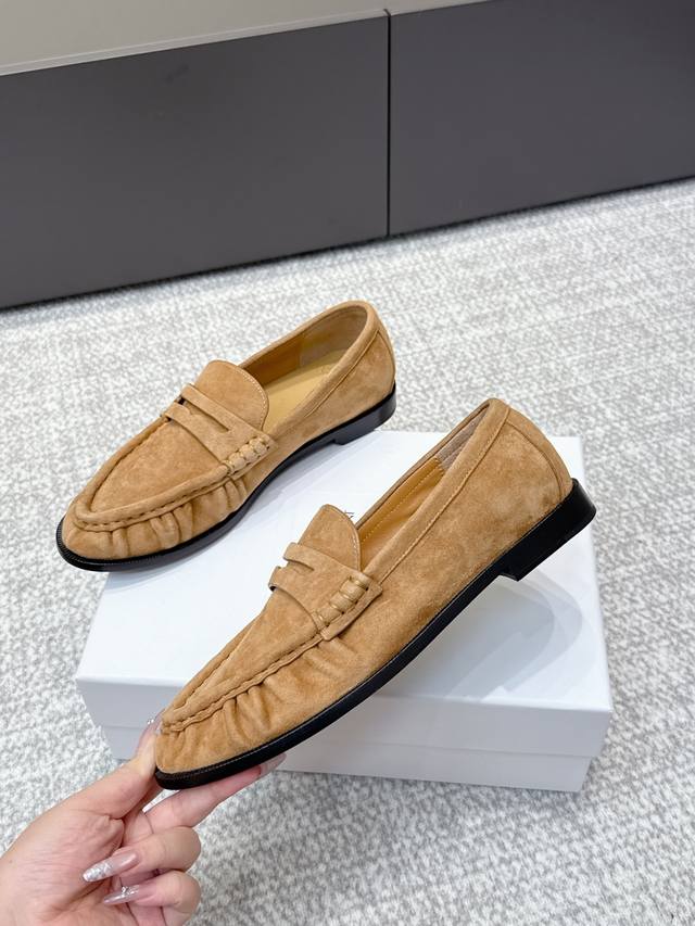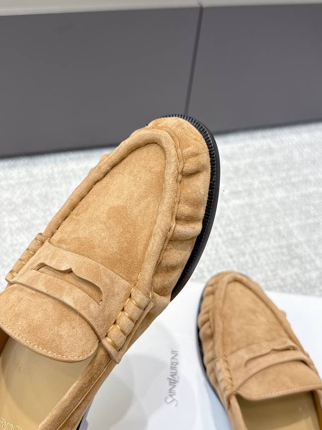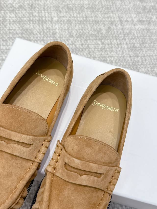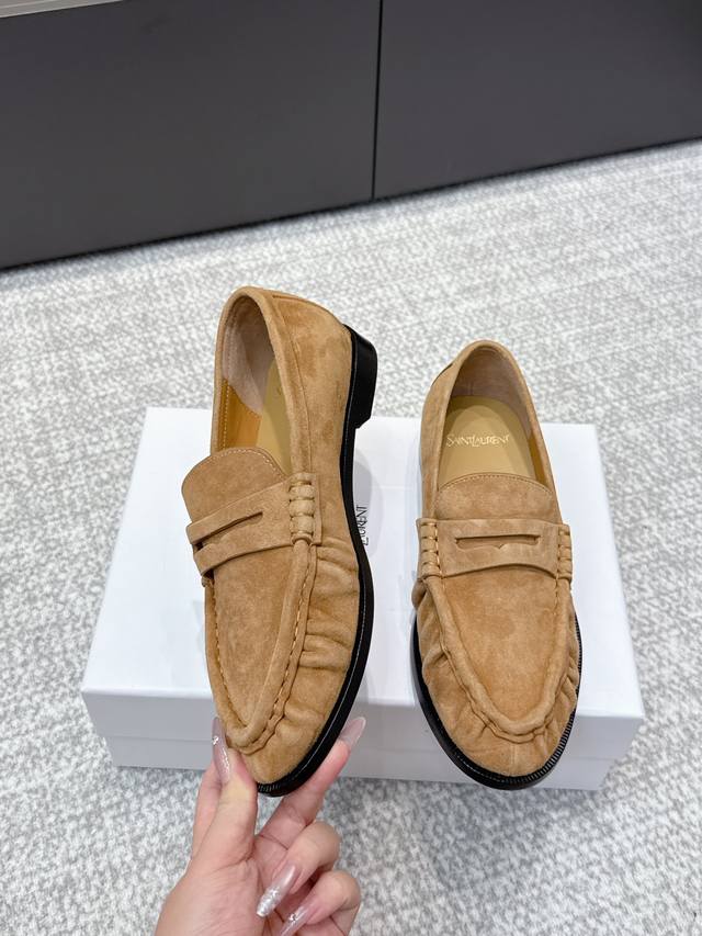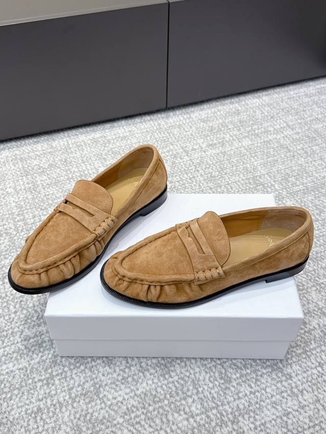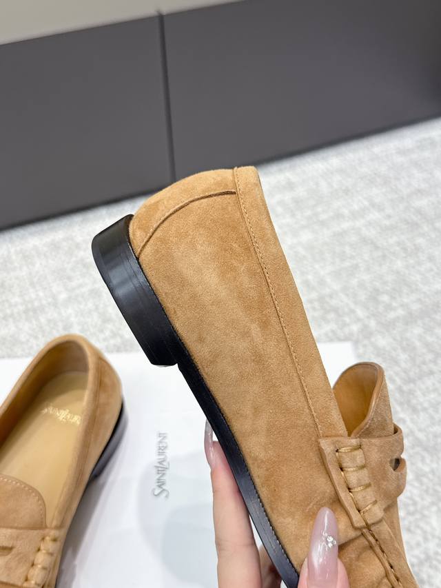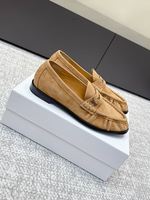 High-quality Yves Saint Laurent 25Ss new YSL small logo loafers. The iconic small logo is the soul of these shoes, presented with a low-key yet refined style. Unlike the ostentatious large logo, it is quiet yet eye-catching, outlining YSL's unique fashion with simple lines, subtly revealing the brand's profound heritage. The classic almond-shaped toe design cleverly flatters the foot shape, visually elongating the foot and highlighting elegance and delicacy. Whether paired with simple wide-leg pants or a playful mini skirt, it can easily showcase different styles, becoming the finishing touch to any outfit. Material: Original custom leather; Lining: Sheepskin insole; Outsole: Italian imported genuine leather; Size: 35-39, 40, 41 (customized).