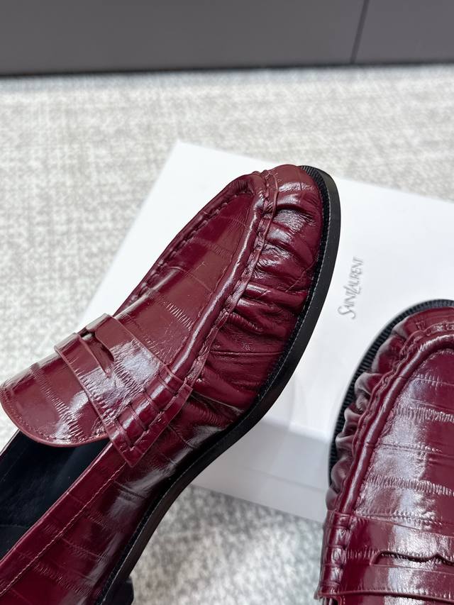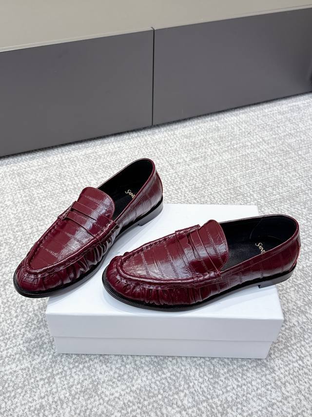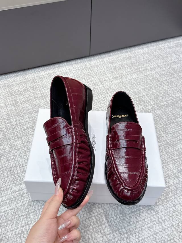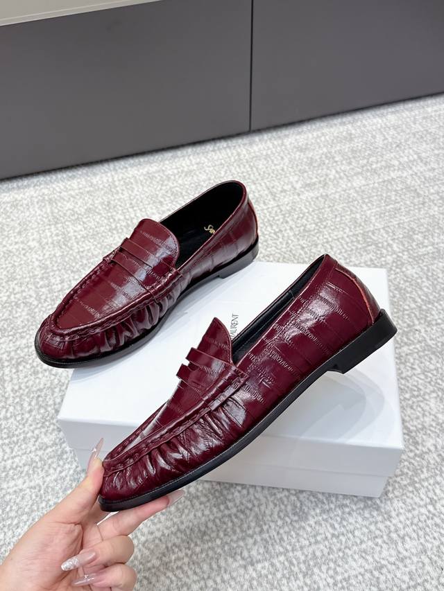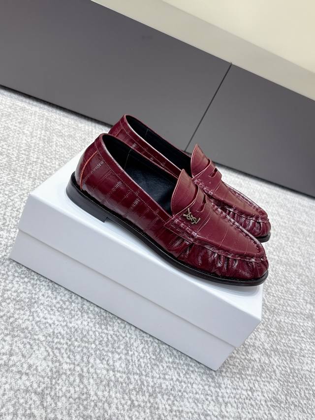 High-quality Yves Saint Laurent 25Ss new YSL small logo loafers. The iconic small logo is the soul of these shoes, presented with a low-key yet refined style. Unlike the ostentatious large logo, it is quiet yet eye-catching, outlining YSL's unique fashion with simple lines, subtly revealing the brand's profound heritage. The classic almond-shaped toe design cleverly flatters the foot shape, visually lengthening the foot line and highlighting elegance and delicacy . Whether paired with simple wide-leg pants or a playful mini skirt, it can easily showcase different styles, becoming the finishing touch to any outfit. Material: Original custom leather; Lining: Sheepskin insole; Outsole: Italian imported genuine leather; Size: 35-39, 40, 41 (customized).