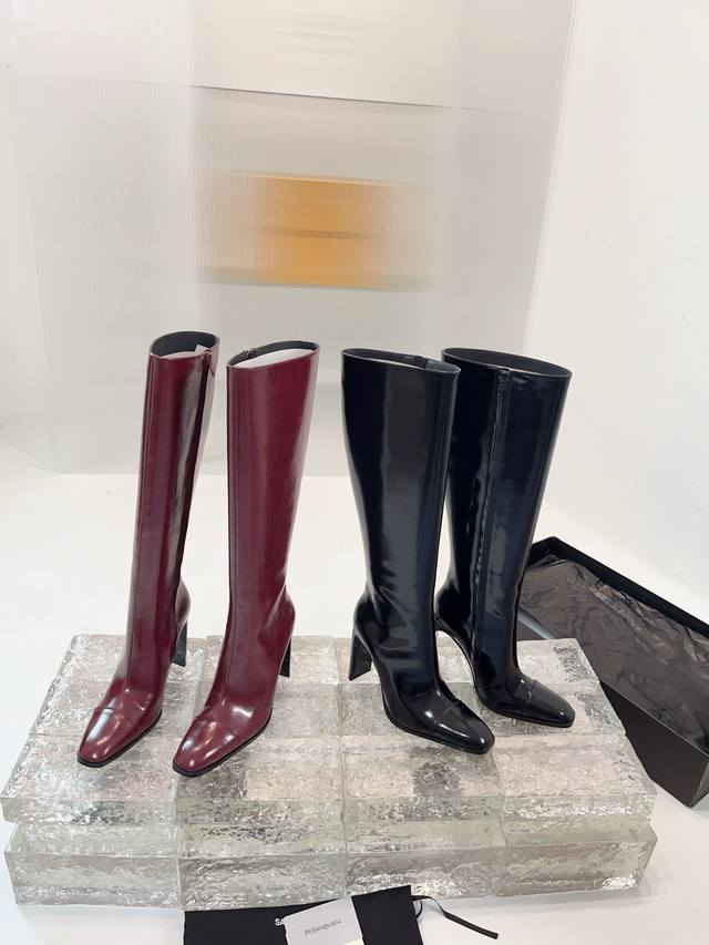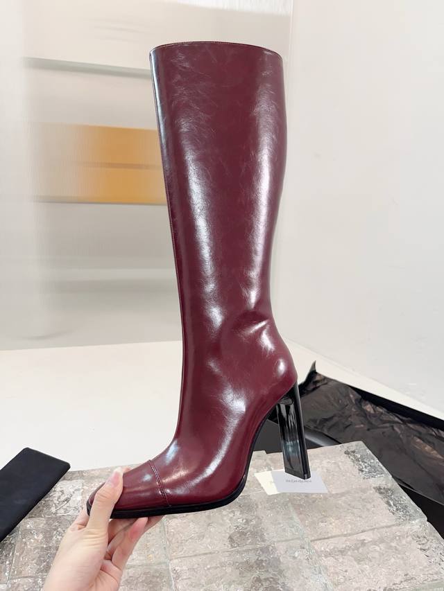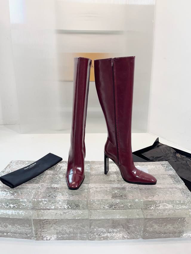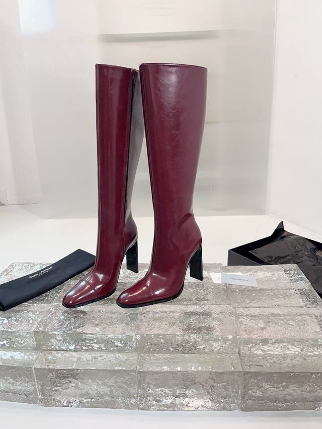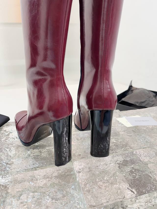 YSL high-heeled boots. The design highlight of this YSL boot is its unique round toe. The strong visual impact brings you more charm and aura.