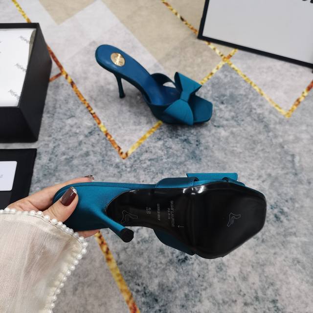 New Arrival: YSL Top-Tier High-Version 2025 Official Website Synchronized New Bow Silk Slippers. Perfect Details, Delicate Sheepskin Insole, AAAA Grade Italian Black Leather Outsole. Ultimate Perfect Replica. 1. Upper: Imported Silk. 2. Insole: Imported Sheepskin. 3. Outsole: AAAA Grade Black Leather Outsole. 4. Sizes: 34-43 (34 41 42 43). Custom orders are non-refundable. 5. Heel Height: 10.5cm. 6. Colors: Available in 6 colors.