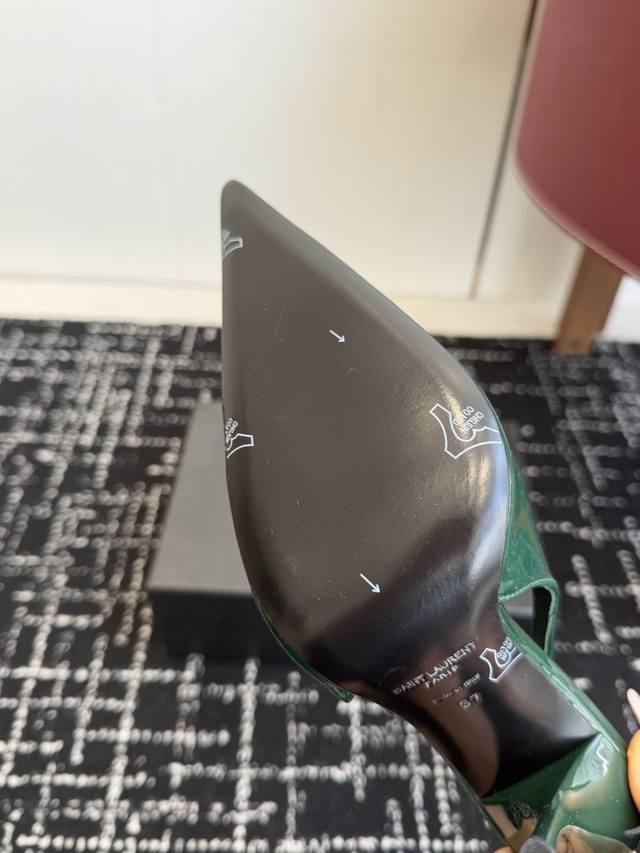 Retailer-grade DDD Saint Laurent 26 Paris Show Synchronized Update: Pointed-toe stilettos are so beautiful! DDD Saint Laurent pointed-toe stilettos perfectly accentuate a sleek and minimalist look. DDD Upper: Custom patent leather; Lining: Sheepskin; Insole: Sheepskin; Outsole: Italian genuine leather. DDD Heel height: 10cm. DDD Size: #35-42, 40, 41, 42. Custom orders are non-refundable and non-exchangeable. DDD