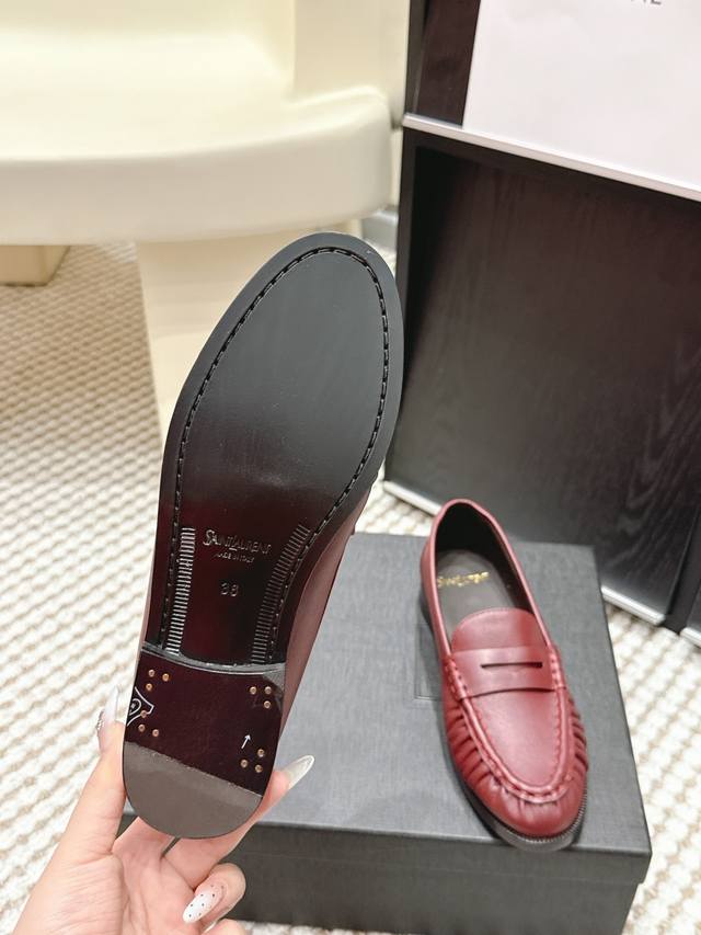 Retailer-grade Yves Saint Laurent 25Ss New YSL Small Logo Loafers DDD The iconic small logo is the soul of these shoes, presented with a low-key yet refined style. Unlike the ostentatious large logo, it is quiet yet eye-catching, using simple lines to outline YSL's unique fashion DNA, inadvertently revealing the brand's profound heritage. DDD The classic almond-shaped design of the toe cleverly modifies the foot shape, visually lengthening the foot line and highlighting elegance and delicacy. Whether paired with simple wide-leg pants or a playful mini skirt, it can easily handle different styles and charm, becoming the finishing touch in the look. DDD Material: Original custom leather DDD Lining: Sheepskin insole DDD Outsole: Italian imported genuine leather DDD Size: 35-39 40 41 Customized DDD