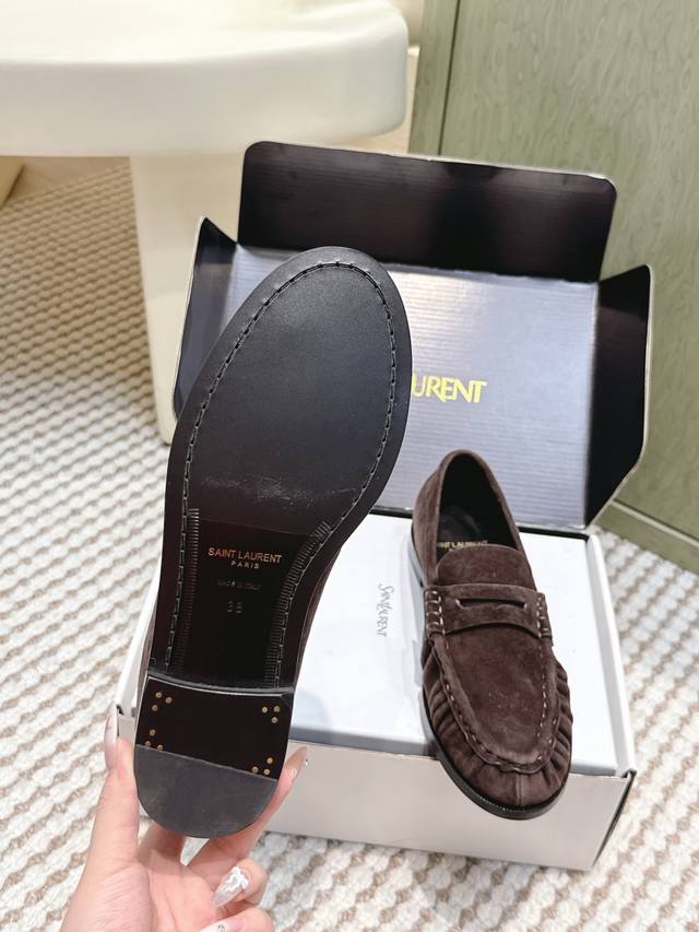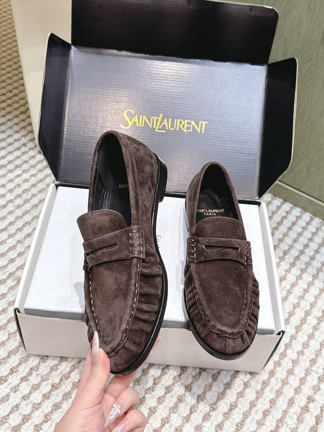 Retail-grade Yves Saint Laurent 25Ss New Arrival YSL Small Logo Loafers DDD The iconic small logo is the soul of these shoes DDD Presented on the shoe body with a low-key and exquisite attitude. DDD Unlike the ostentatious large logo, it is quiet yet eye-catching DDD Outlines YSL's unique fashion sense with simple lines DDD Inadvertently reveals the brand's profound heritage DDD The classic almond-shaped design of the toe cleverly modifies the foot shape DDD Visually lengthens the foot line, highlighting elegance and delicacy. DDD Whether paired with simple wide-leg pants or a playful short skirt DDD It can be easily handled to show different styles of charm DDD Becoming the finishing touch in the look. DDD Material: Original custom leather DDD Lining: Sheepskin insole DDD Outsole: Italian imported genuine leather outsole DDD Size: 35-39 40 41 Custom DDD