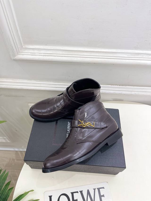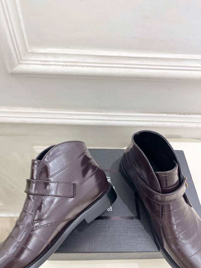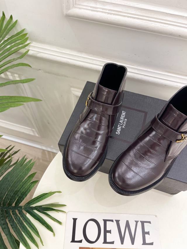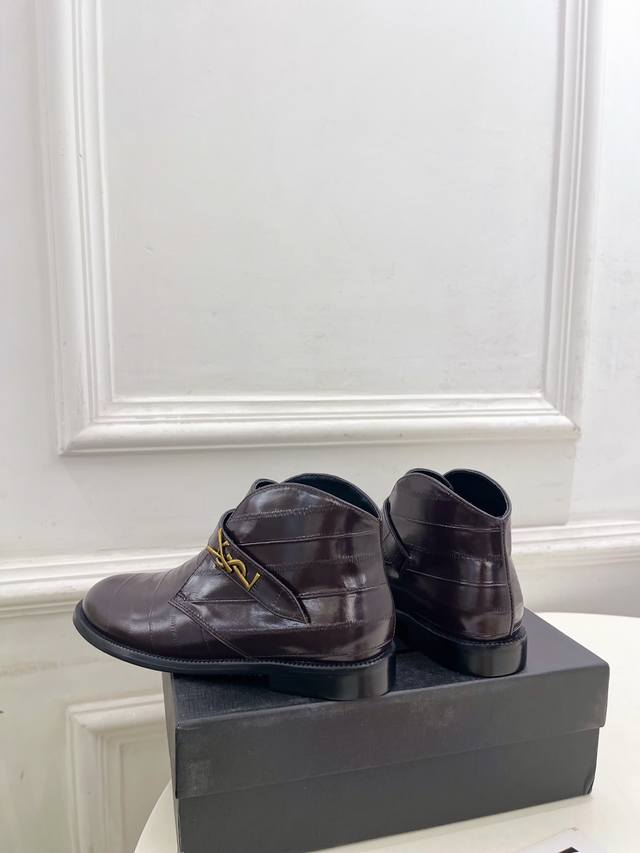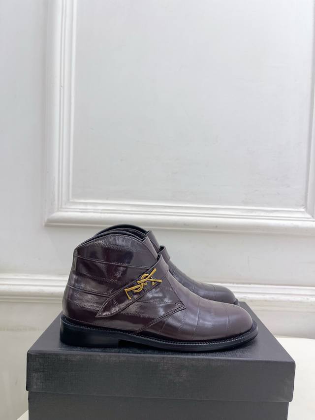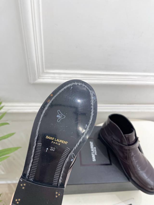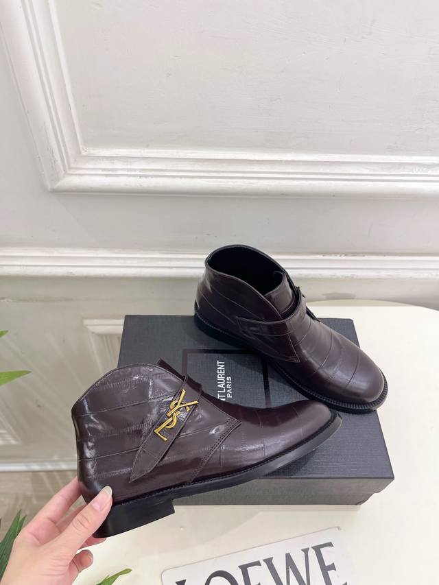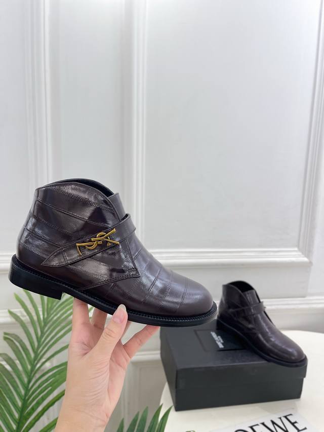 Sain*Laurent 2025 Fall/Winter New Arrival: Syl Eel Leather British Style Ankle Boots DDD A super stylish YSL boot, a top-tier version, debuting with a completely new interpretation! Minimalist design, incredibly flattering for the legs, retro and fashionable style DDD Looks great with anything! DDD Upper: High-end custom imported eel leather DDD Lining: Imported goatskin lining DDD Outsole: Italian genuine leather outsole DDD Heel height: 2cm DDD Sizes: 35-39, 40.41 can be customized DDD Price: DDD