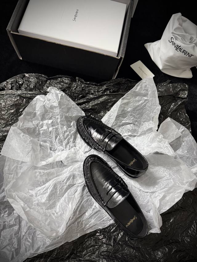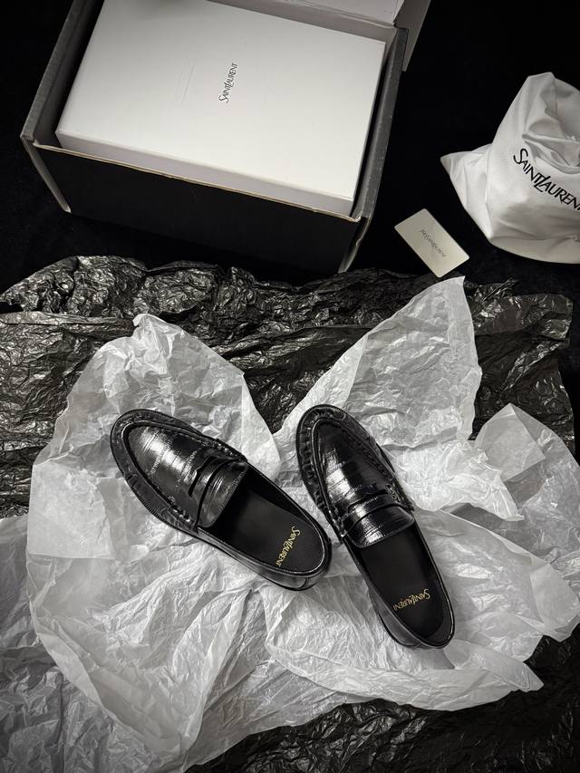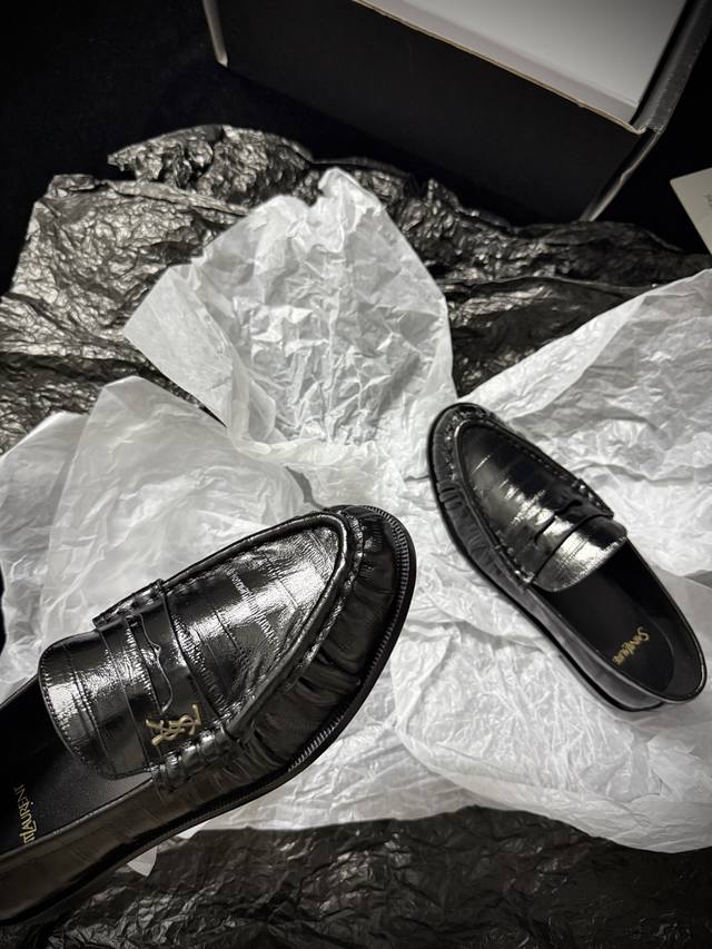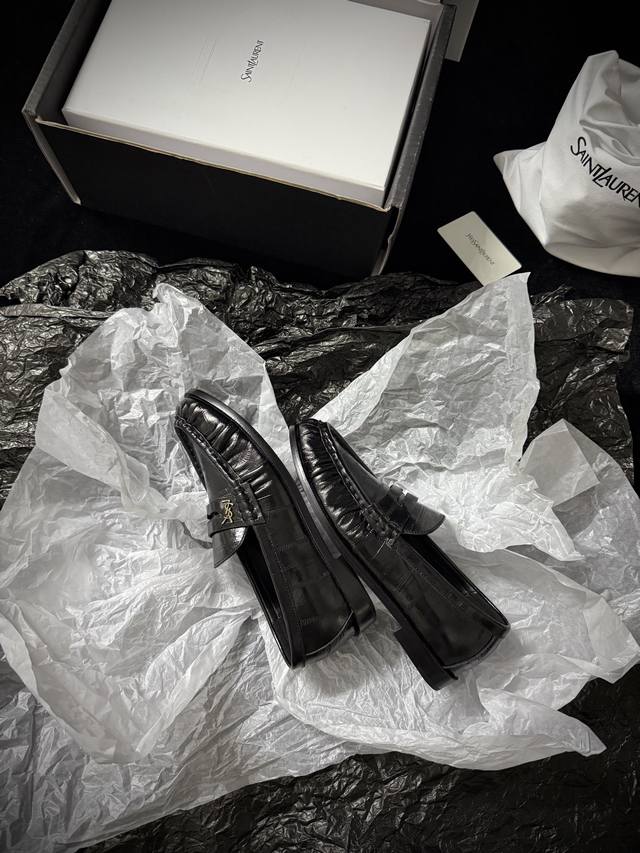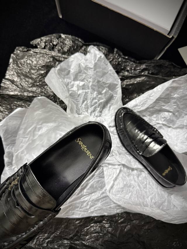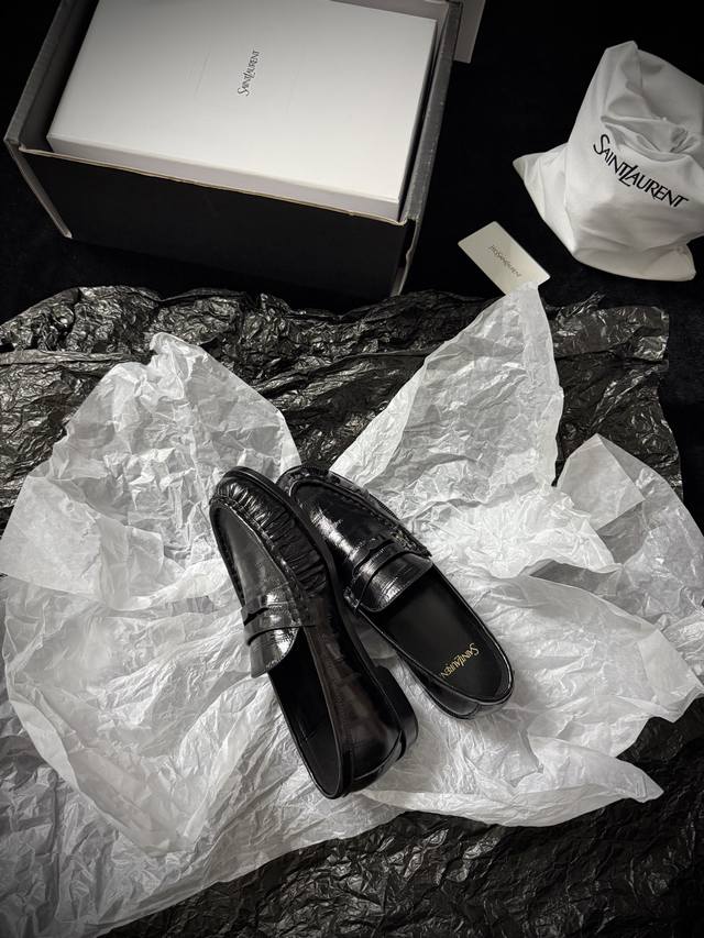 Ysl loafers, have a vintage feel. Waxed leather with a wrinkled texture and a small gold label for a relaxed and luxurious look. Step into the fashion world with a relaxed, cinematic vibe. A versatile Citywalk accessory for everyday streetwear, slip on and go for effortless, big wins!