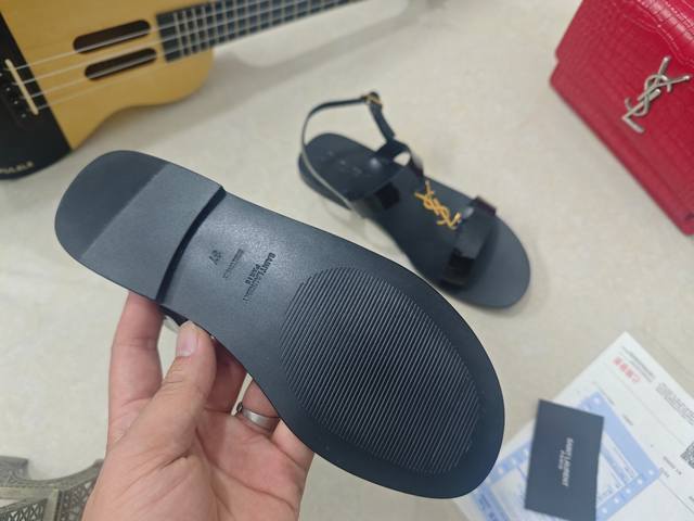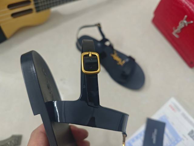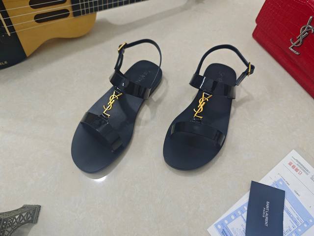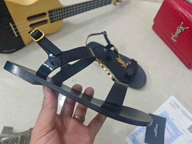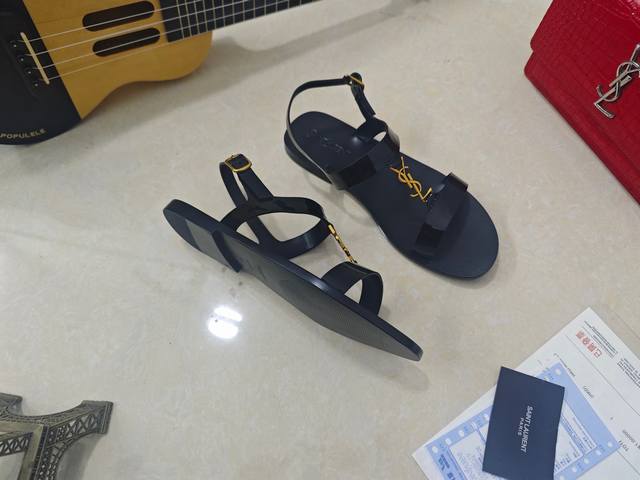 Saint Laurent flat sandals, the latest 2025 early spring counter models, Ysl, logo letter buckle decoration