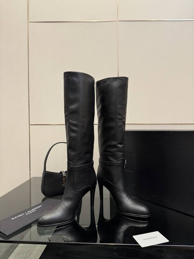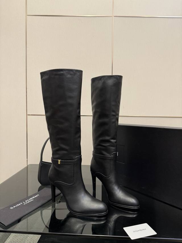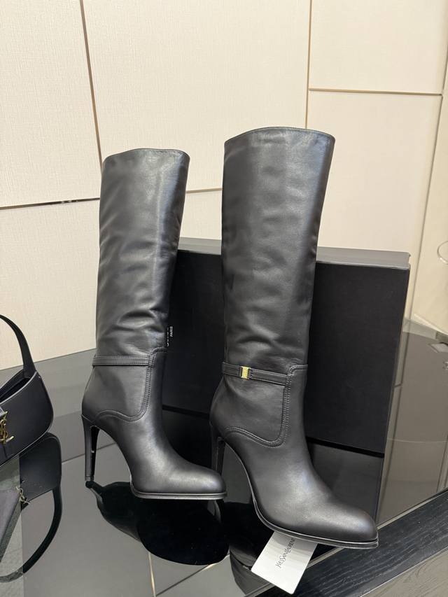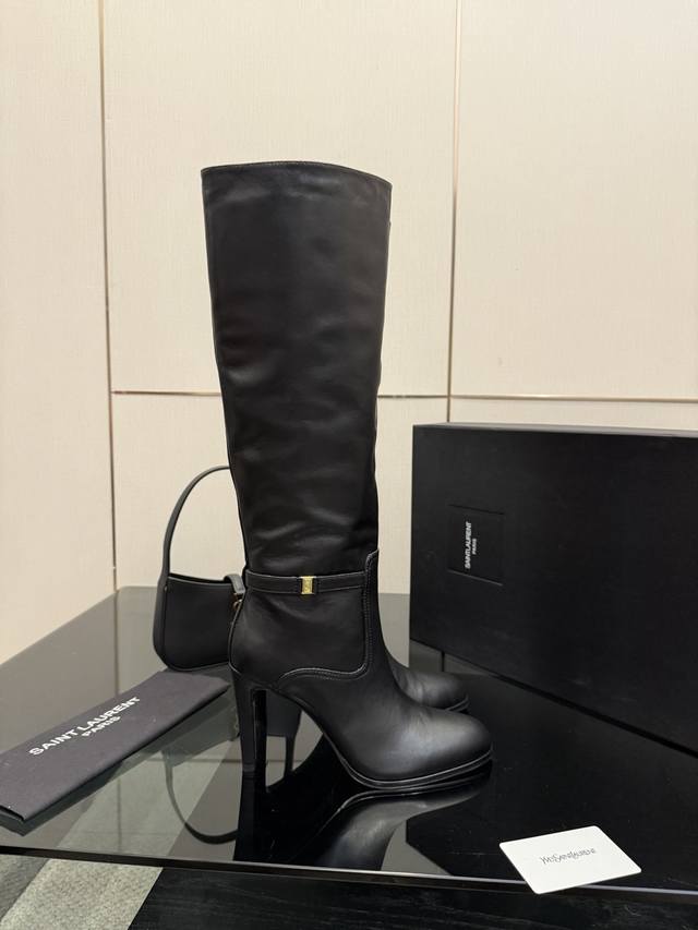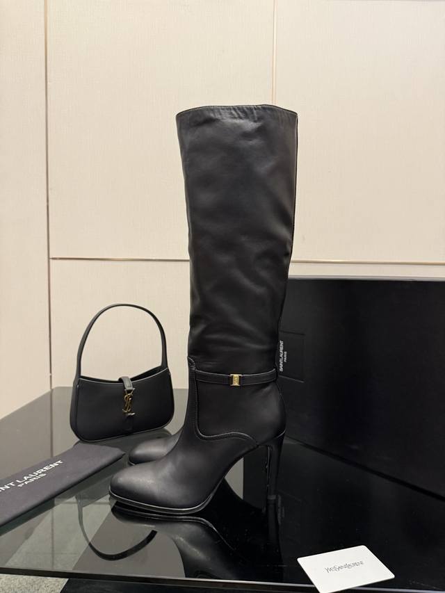 Saint Laurent High-Heeled Boots with Gold Logo Buckle, Pointed Toe Design Makes Legs Look Longer DDD Material: Denim DDD Outsole: Genuine Leather Outsole DDD Sizes: 35-41, 40, 41, Custom Made DDD