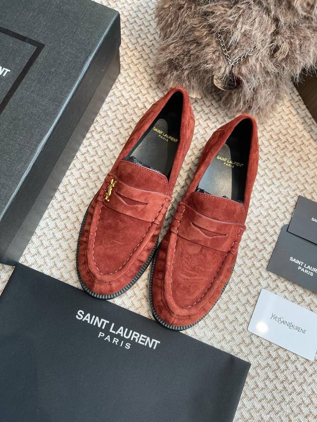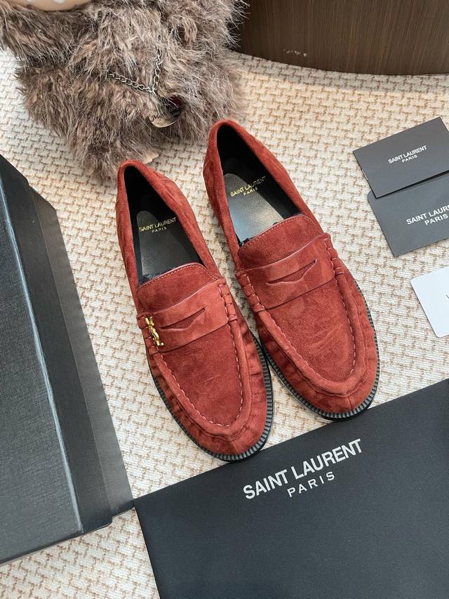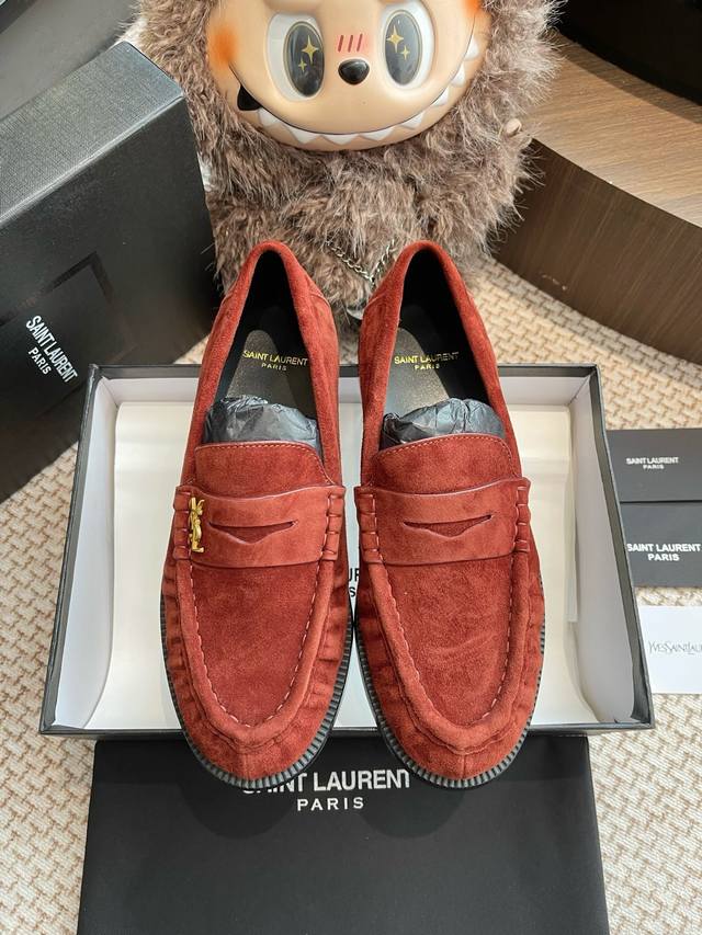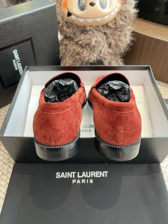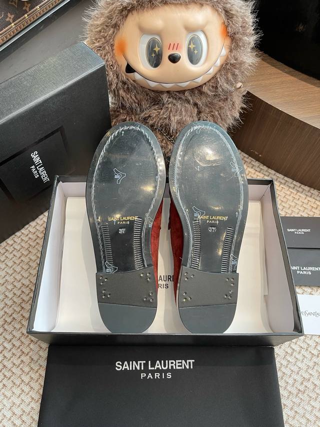 Saint Laurent loafers. The entire shoe is sourced from the original and developed using custom materials. It features a uniquely molded outsole, and all details are identical to the original. Even the packaging is the same as the authentic product. Sizes: 35-40.