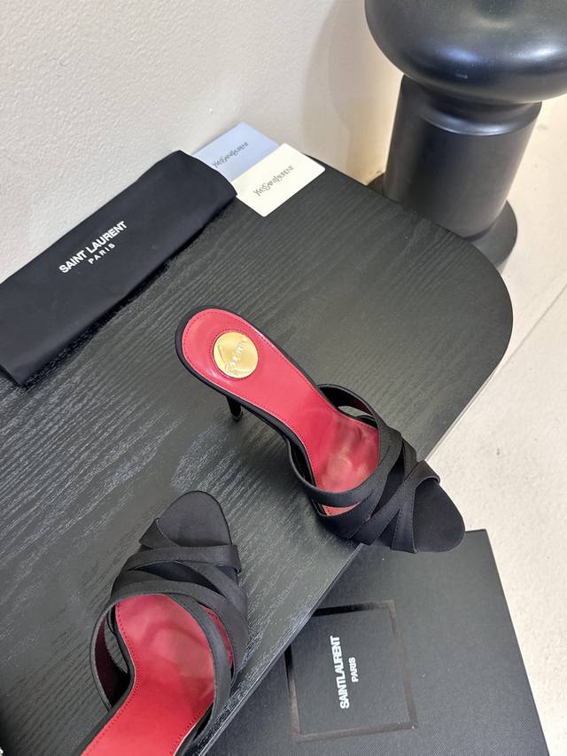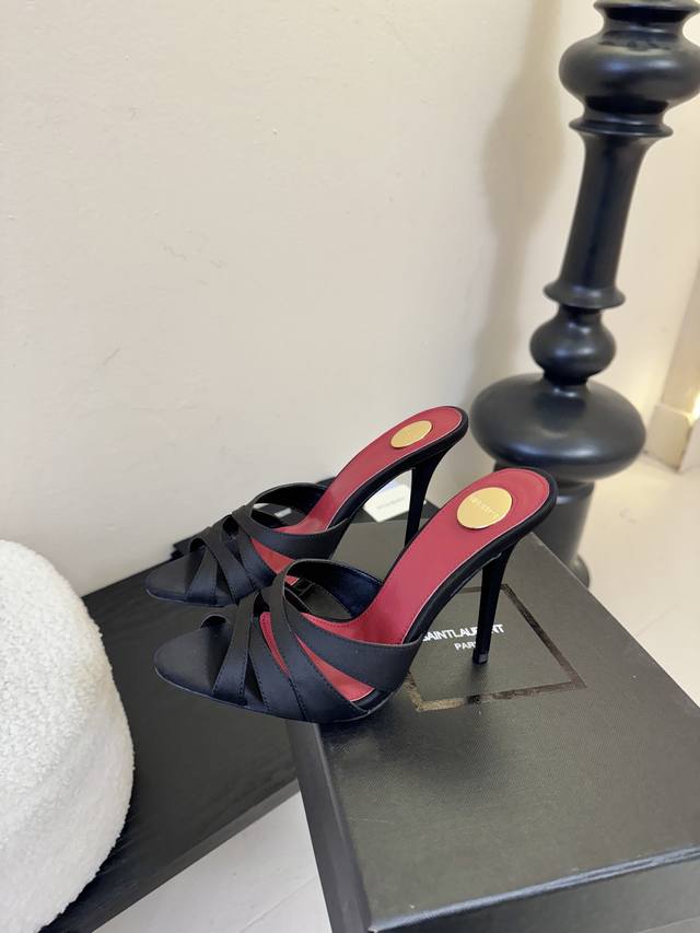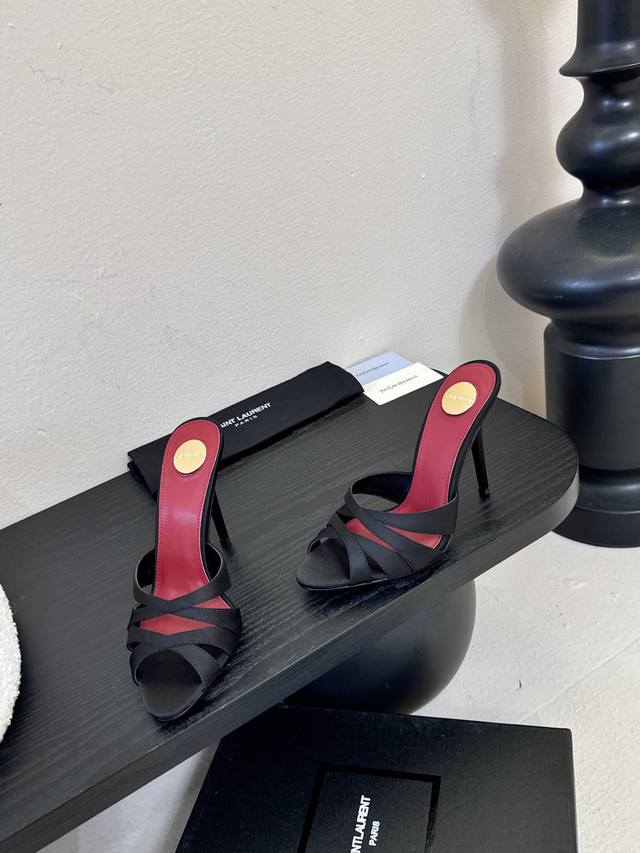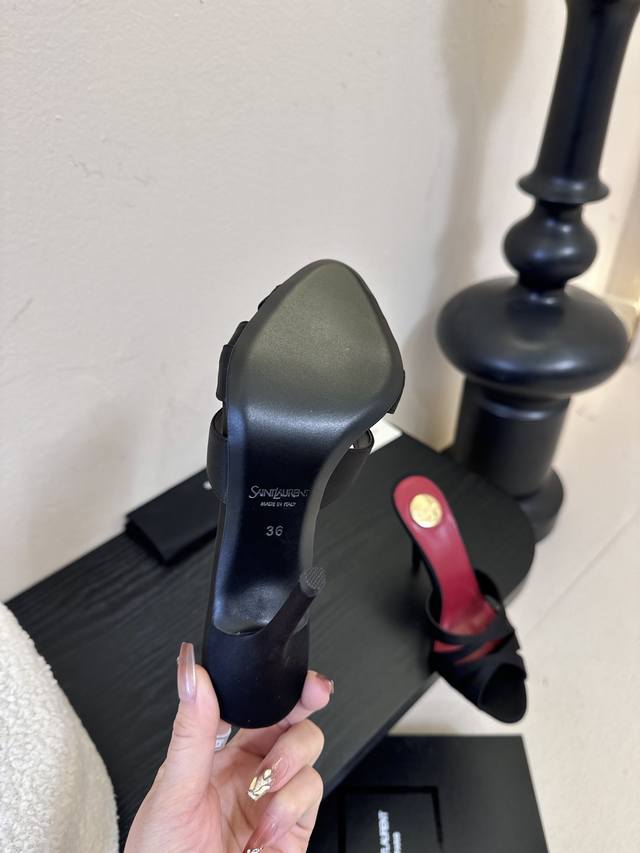 Saint Laurent* Ss New YSL Logo High-Heeled Slippers YSL runway style high heels,
