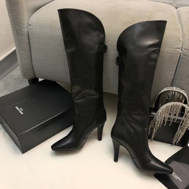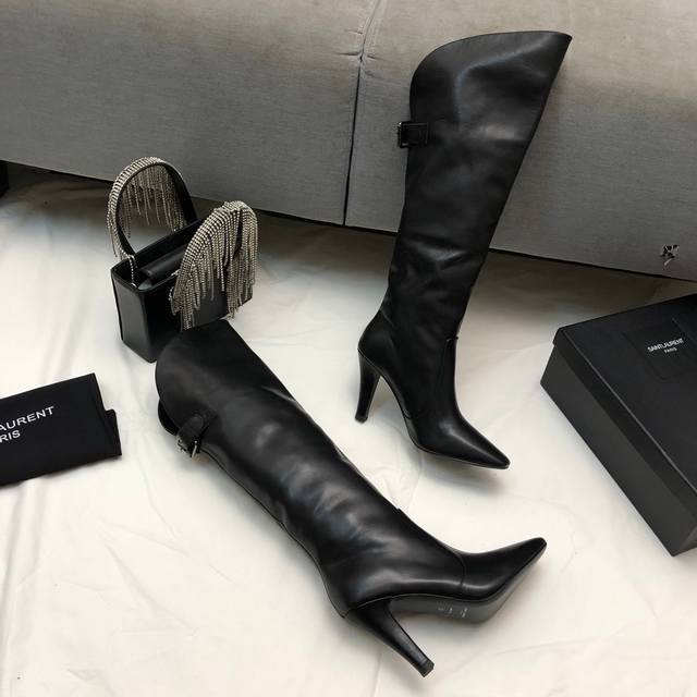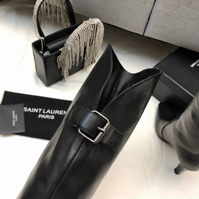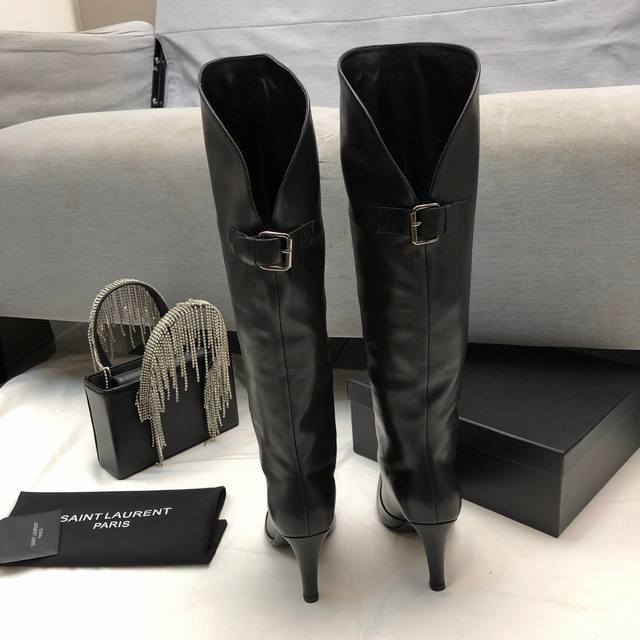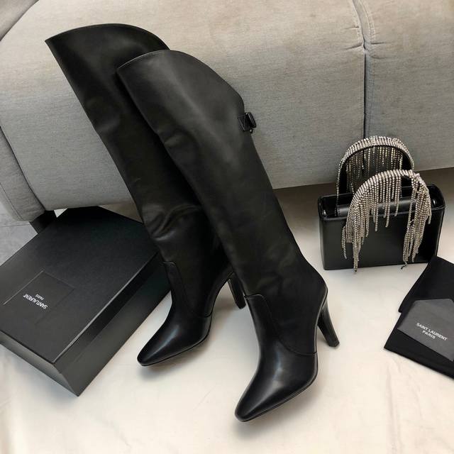 Saint Laurent YSL high-heeled boots. The latest fall/winter style, these boots perfectly shape your feet and instantly elongate your legs when paired with heels. Upper: 18-inch imported cowhide leather Lining: imported sheepskin Outsole: Italian cowhide Height: 10.5cm Genuine leather heel Sizes: 35-40 41 Made to order, no returns or exchanges Colors: Black, Burgundy