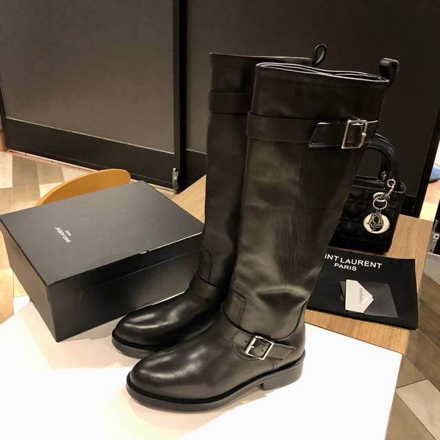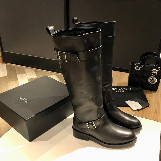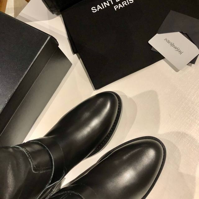 Saint Laurent YSL high-heeled boots. These are the latest fall/winter boots from the store. They perfectly shape your feet and instantly elongate your legs when paired with heels. Upper: 16-inch imported cowhide leather, Lining: imported sheepskin, Outsole: Italian cowhide leather, Heel Height: 3cm, Sizes: 35-40, 41, Made to order, no returns, Colors: Black, Gray,