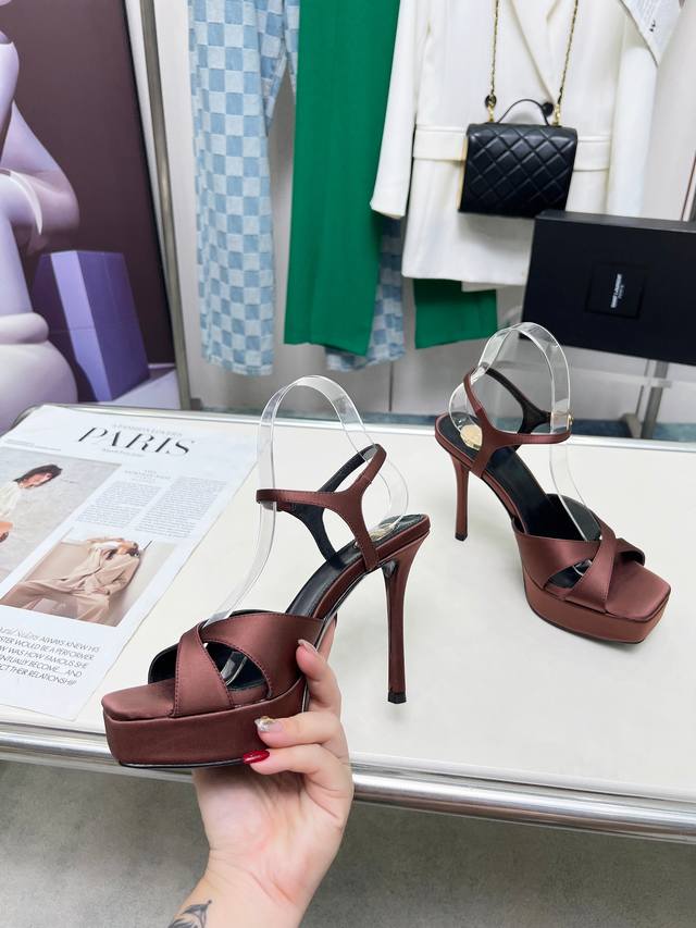 Saint Laurent DDD YSL Saint Laurent Sandals DDD Upper: Silk DDD Sizes 35-42, Size 42 is custom-made and non-refundable DDD Heel height 8.5cm, Platform height 2.5cm DDD Genuine leather outsole 2642-12 DDD