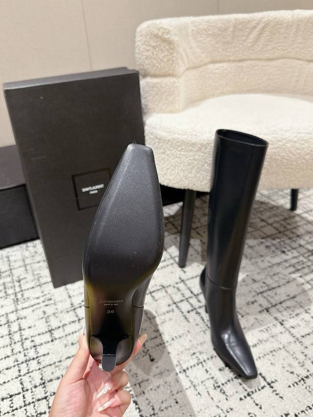 Saint Laurent YSL Square Toe High-Heeled Boots DDD The design highlight of these YSL boots is their unique square pointed toe, creating a strong visual impact and bringing you more charm and aura. The design is like the finishing touch, shining with dazzling light DDD Upper: Top-grain cowhide DDD Lining: Water-dyed goatskin DDD Outsole: Italian genuine leather DDD Heel height: 7cm DDD Sizes: 35-39 40 Custom-made, no returns or exchanges DDD