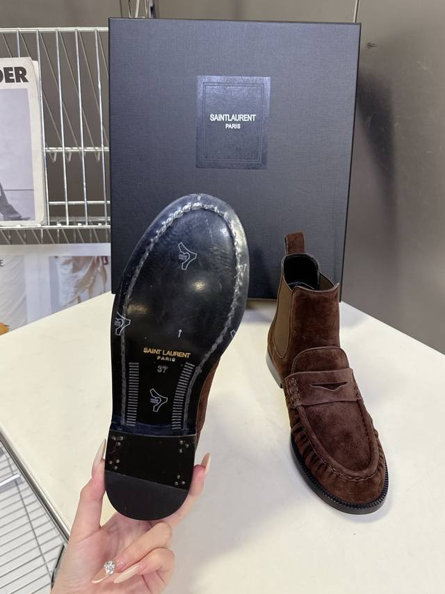 Saint Laurent's latest Fall/Winter ankle boots are incredibly popular! We customize every single hardware buckle on each version to be a 1:1 replica! The size and texture are completely identical to the original. The upper is made of imported high-gloss calfskin, the lining is a blend of sheepskin, and the toe strap is made of comfortable and soft sheepskin. The sole is a 1:1 replica of the original genuine leather. It's absolutely perfect! They're incredibly comfortable to wear, feel amazing, and go naturally with jeans, blazers, or skirts. Authentic product with full packaging. Italian genuine leather sole. Size: 35-40 DDD