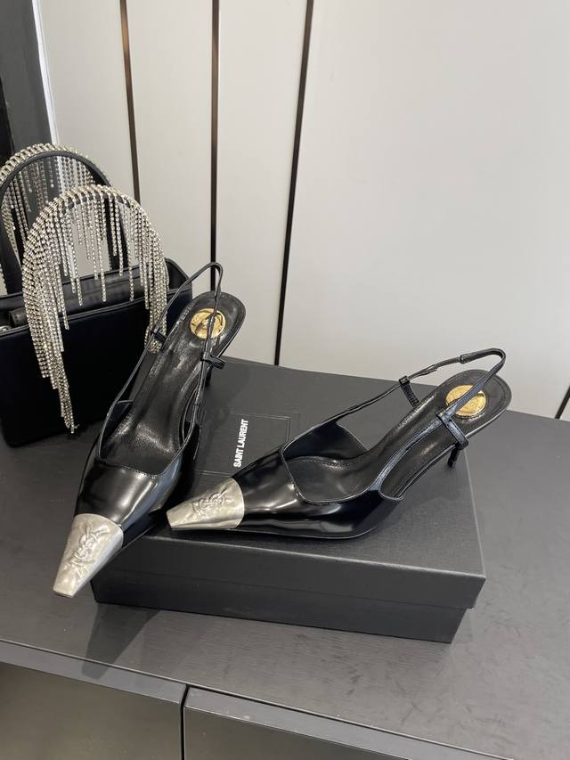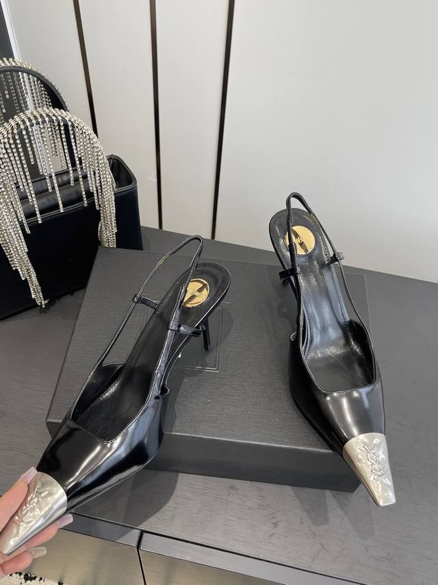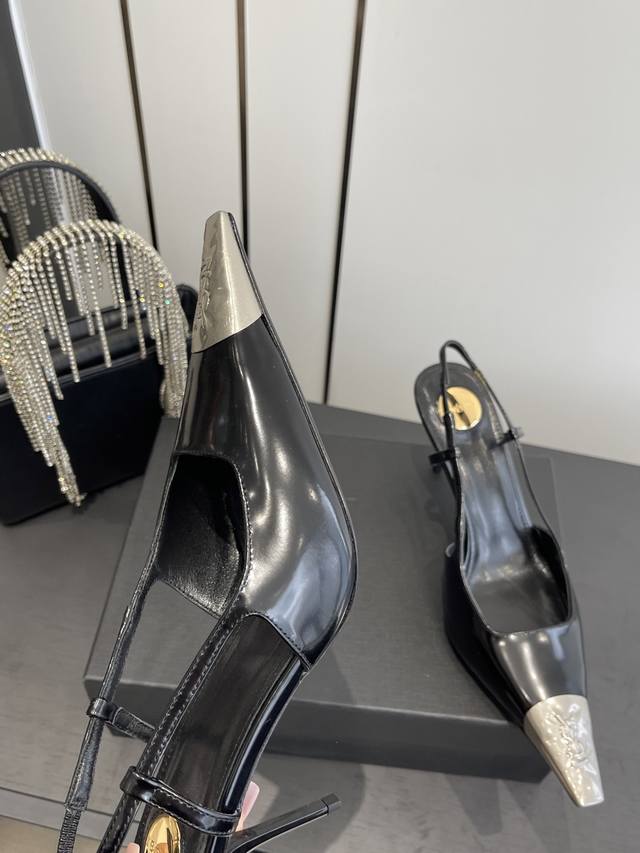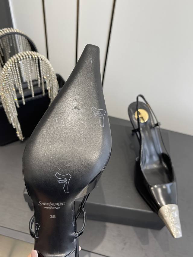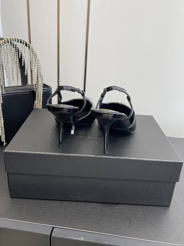 Saint Laurent's new square-toe YSL high heels with buckle design, elegant and sophisticated. These YSL runway heels are perfect for various dresses and flattering for all foot shapes. The translucent rhinestones create a mesmerizing effect under light. They're absolutely gorgeous and make your feet look incredibly fair. The delicate crystal chain embellishes the ankle, highlighting its slender lines and releasing endless elegant charm. Explore more exquisite high heels! Material: Calfskin leather with open beaded sole. Heel height: 10.5cm. Sizes: 35-42, 40, 41, 42 (custom made).