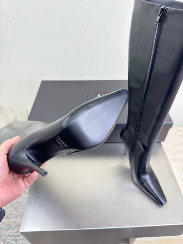 Square-toe leather high boots, a must-have for long legs, YSL high-heeled boots DDD Yvette Saint Laurent logo DDD Exquisite high heels DDD Black high boots, YSL shoes that understand women's hearts, flawless beauty that enhances your aura DDD Leather material, elegant and noble DDD Imported sheepskin lining, comfortable and snug fit DDD Italian imported genuine leather outsole DDD Sizes: 35 36 37 38 39 40 41 42 40 41 42 Order now DDD Comes with boutique packaging DDD