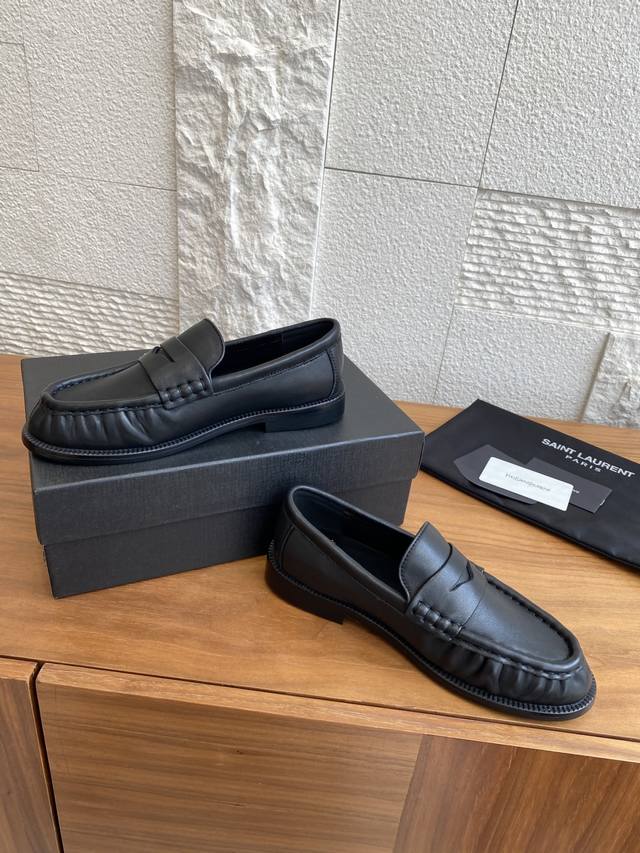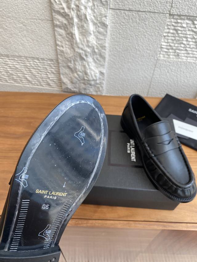 YSL Saint Laurent's treasure of a fashionable item, soft loafer mules, adorned with Le Cassandre, and paired with a hand-stitched moccasin toe. The addition of a "pleated" toe to the classic loafer makes them more three-dimensional and less monotonous when worn. They feel substantial in hand yet lightweight on the foot, achieving a perfect balance of comfort and visual appeal, adding a touch of romance to the new season! A versatile all-season must-have for various styles
