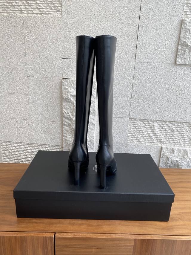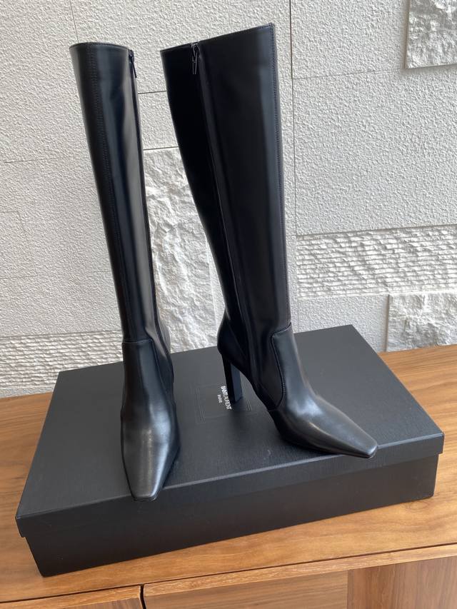 Saint Laurent 25Ss Fall/Winter New Francoise Series Square Toe Side Zipper High-Heeled Thigh-Top Boots