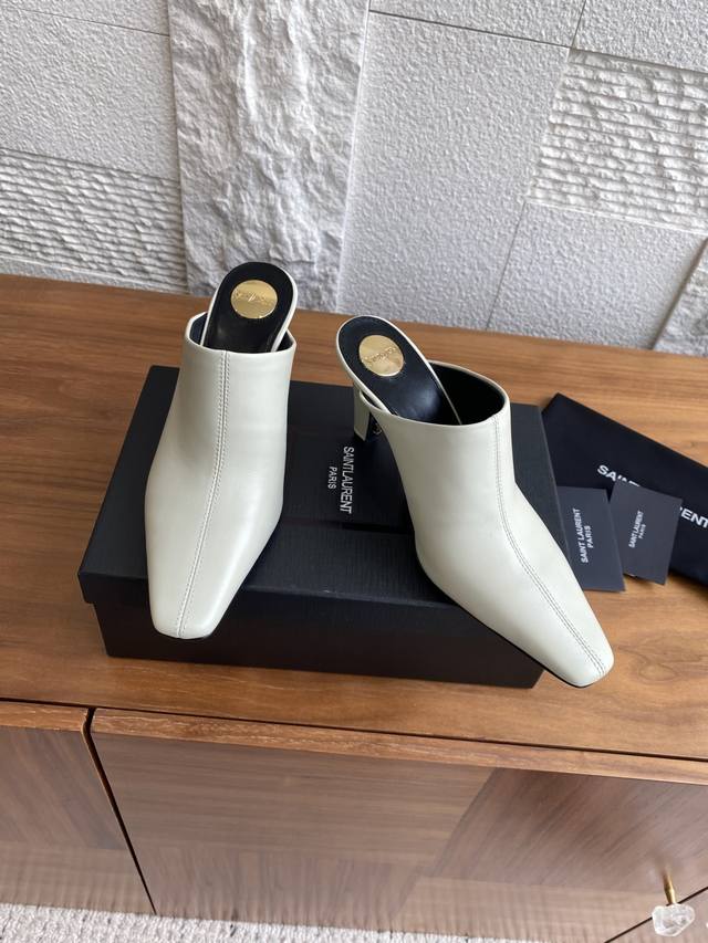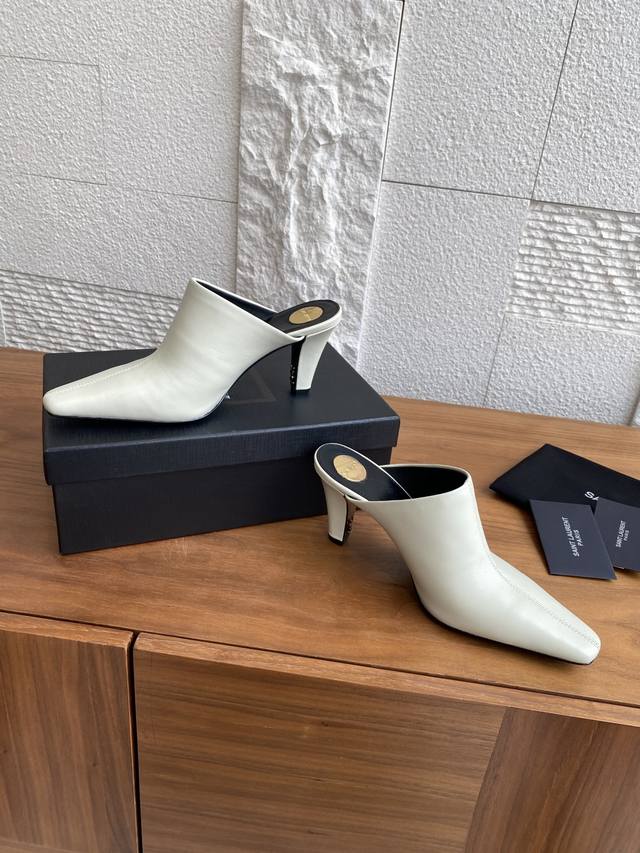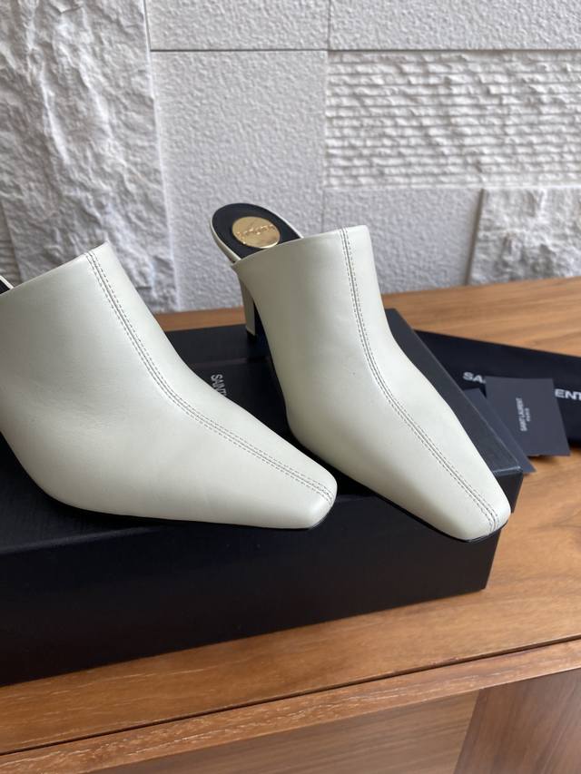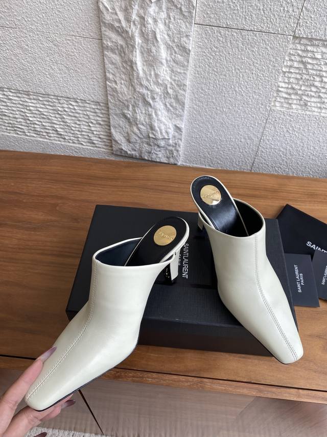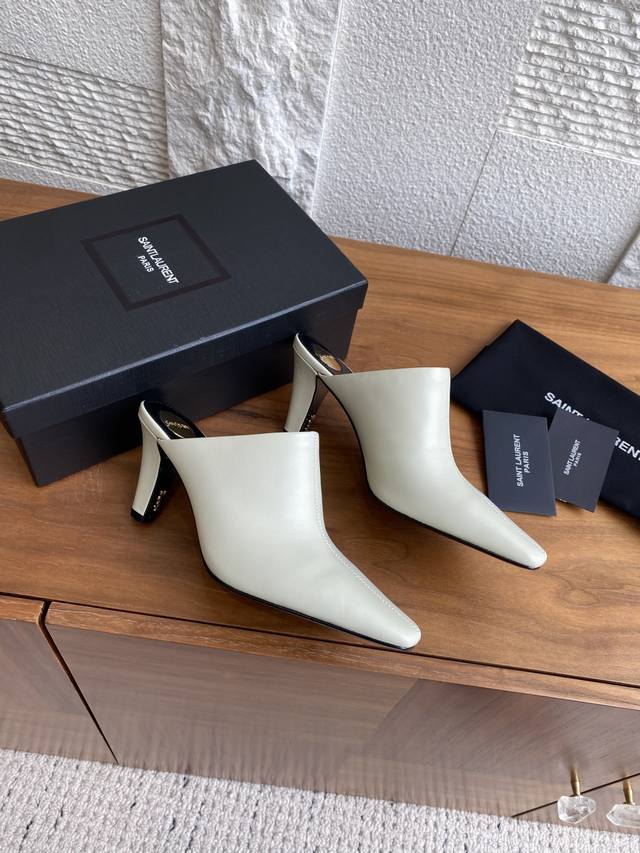 Saint Laurent 25Ss Fall/Winter New Jill Series Square Toe High-Heeled Mules. Saint Laurent explores the essence of seasonal dressing, condensing a light and comfortable atmosphere. A classic continuation of runway style, artistic aesthetics and relaxed posture go hand in hand, dedicated to creating a minimalist new style, releasing the ultimate minimalist beauty, capturing fashionable elegance, comfortable for long walks, and three-color custom dyeing for a powerful presence. Fearless of various styling challenges, made of carefully selected calfskin with a luxurious glossy texture. The three-dimensional, relaxed silhouette is highly accommodating to various foot shapes, helping to eliminate styling worries and satisfying diverse looks. A versatile all-season essential. Material: Imported calfskin. Insole: Imported sheepskin. Outsole: Italian imported genuine leather. Size: 35-41, 40-41 (Made to order, no returns or exchanges).
