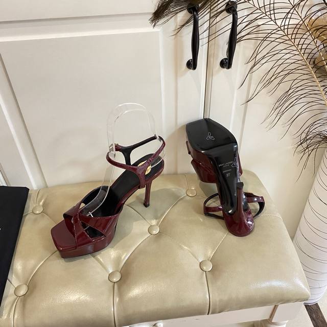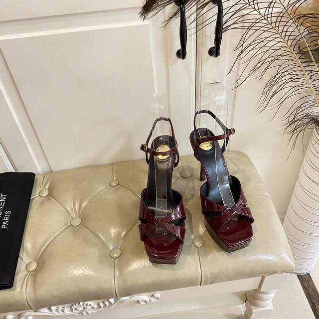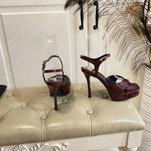 Top-tier version, new YSL Saint Laurent high-heeled sandals, lambskin silk upper, lambskin lining, genuine leather outsole , heel height 8.5cm, platform height approximately 2.5cm, sizes 35-40, size 41, and 42 are custom-made and non-refundable.