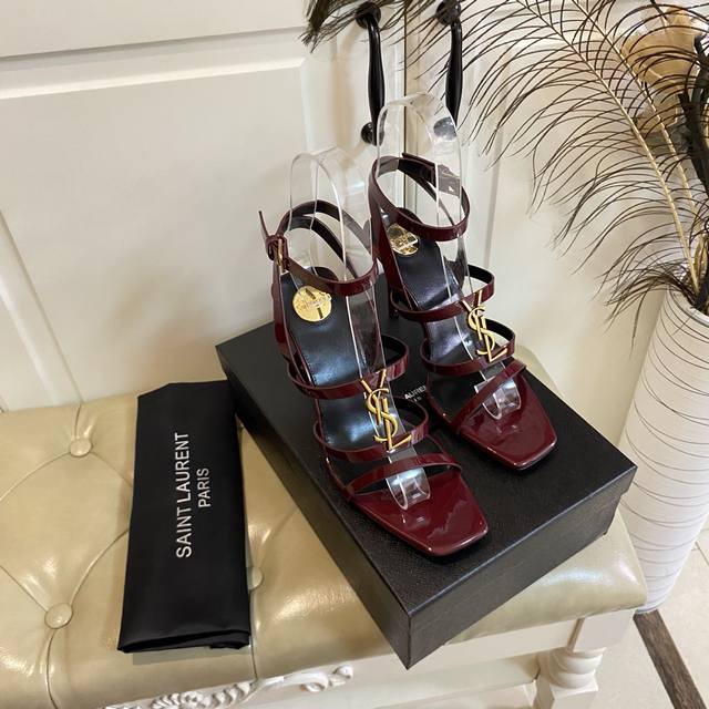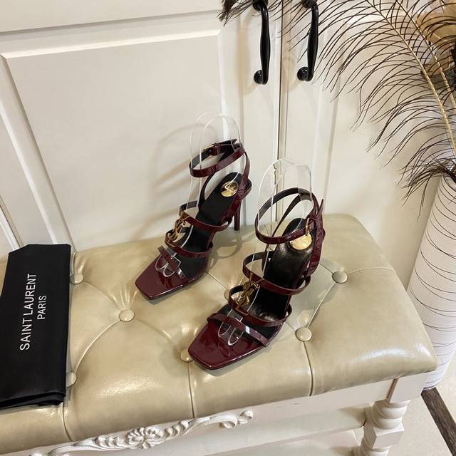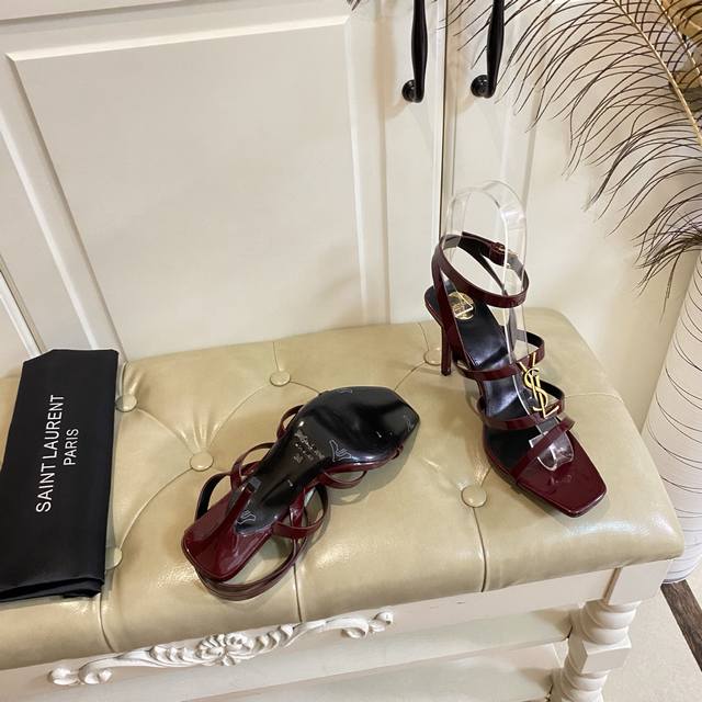 Top-tier version, new YSL Saint Laurent high-heeled sandals, patent leather, sheepskin lining, genuine leather outsole, 9cm heel height, sizes 35-40, 41-43, custom-made, no returns or exchanges.