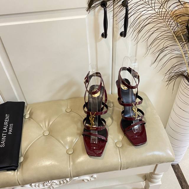 / Top-tier version, new YSL Saint Laurent high-heeled sandals, patent leather, she