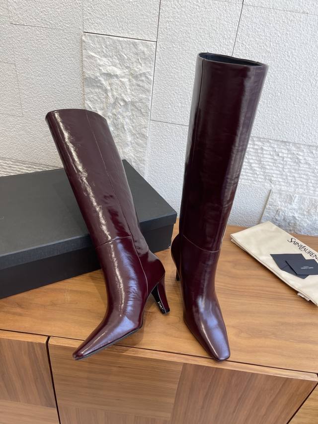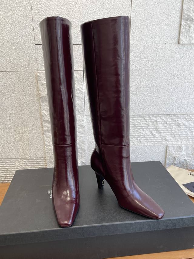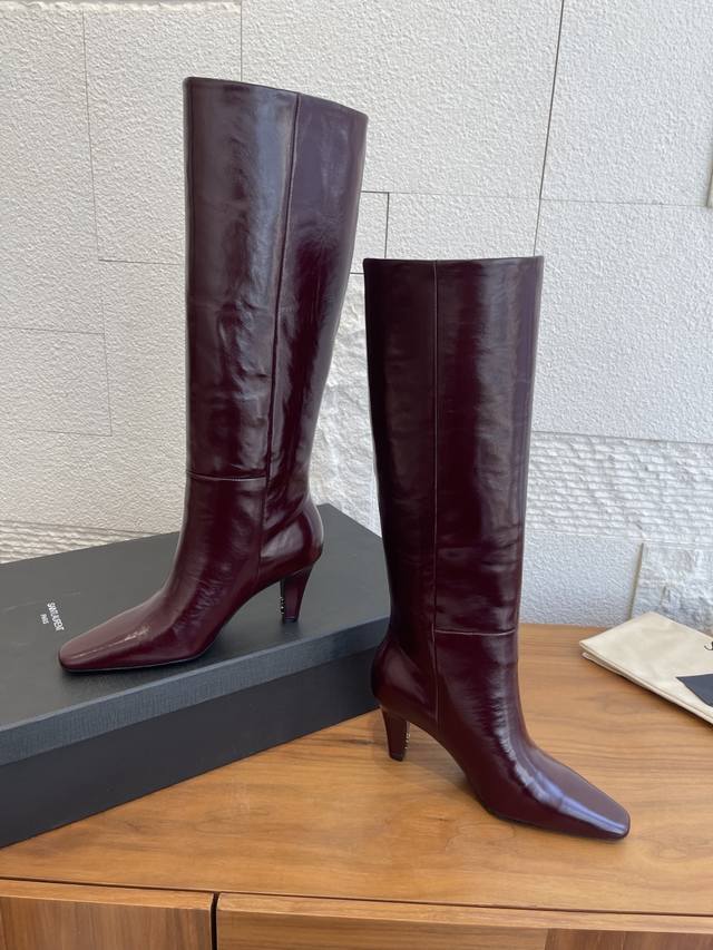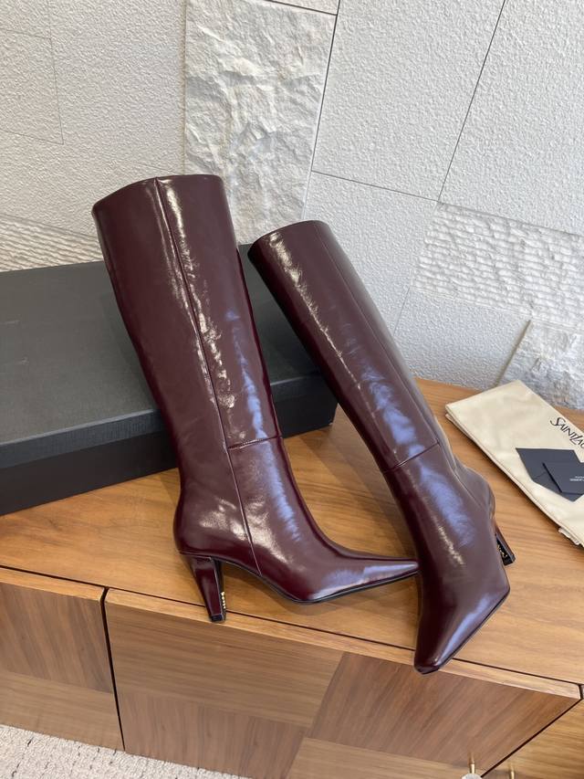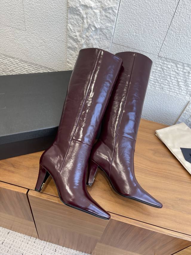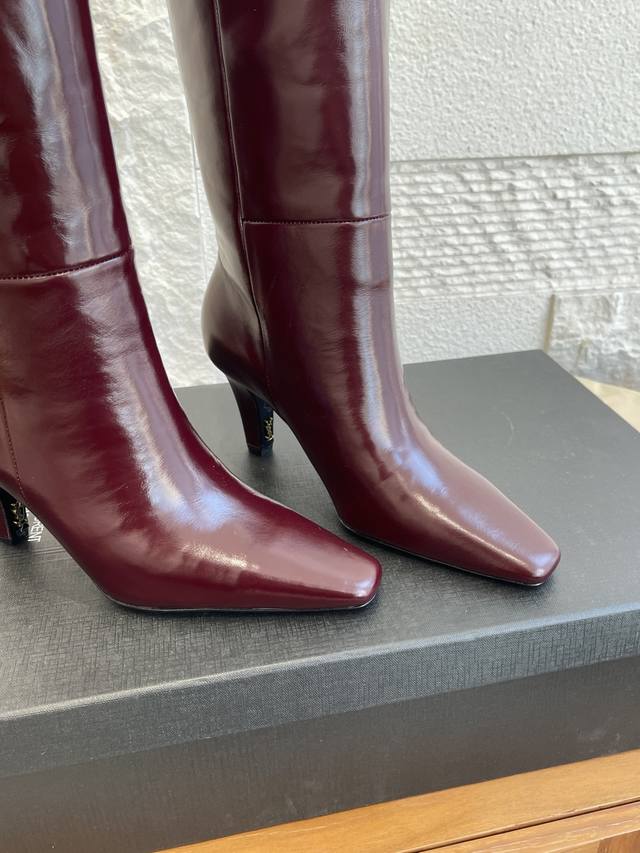 Top-tier version: DDD Saint Laurent 25Ss Fall/Winter New Pointed Toe Side Zipper Chunky Heel Boots DDD These Saint Laurent high boots feature a square pointed toe, side zipper closure, tapered chunky heel, and Le Cassandre embellishment on the inside. They look very elegant and flattering on all body types, elongating the legs and suitable for various occasions. A must-have item for fall and winter outfits! DDD Material: Imported calfskin DDD Insole: Imported sheepskin DDD Outsole: Italian imported genuine leather DDD Size: 35-41 40 41 Custom orders are non-refundable DDD