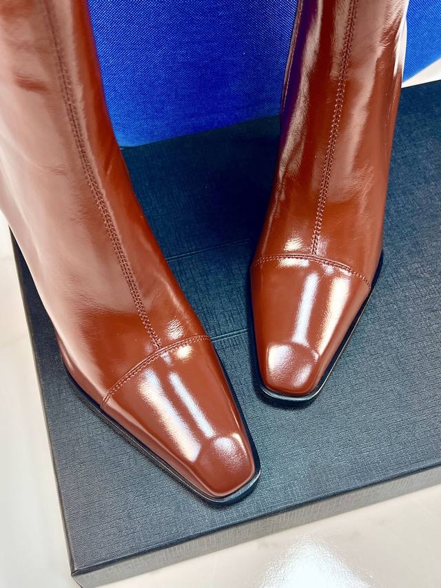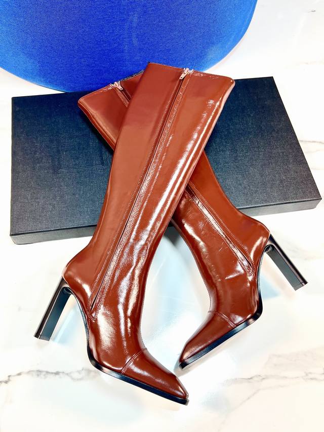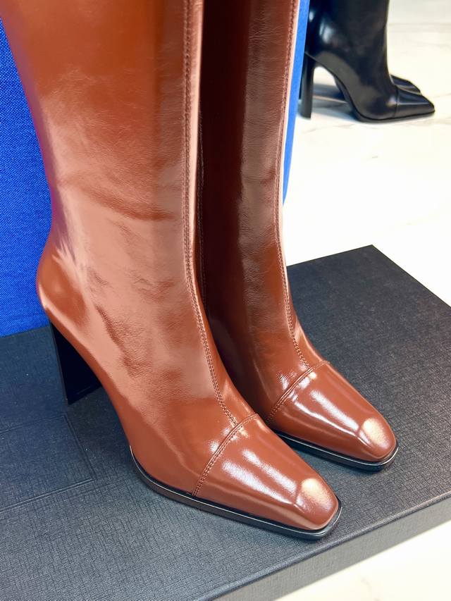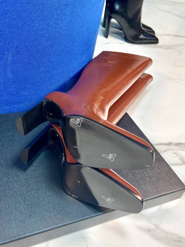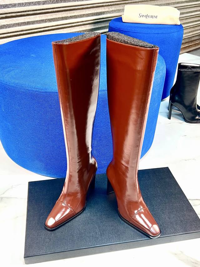 YSL 25A Classic Chunky Heel Long Boots, Retro Modern Long Boots, Autumn/Winter Chunky Heel Square Toe, Saint Laurent New Sexy and Elegant Shoes. These new autumn/winter square toe high-heeled zip-up boots are super flattering and make your feet look slimmer. They're incredibly comfortable, very versatile, and highly recommended. The quality and materials are absolutely top-notch. Upper: Calfskin leather, sheepskin lining, sole: Italian genuine leather outsole, heel height 9.5cm. Size: 35-41.