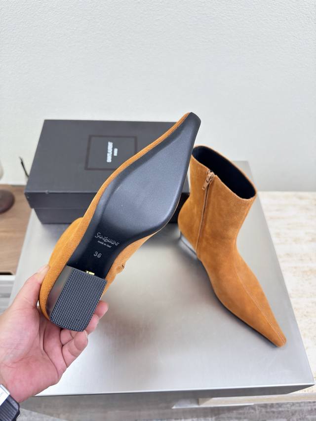 YSL 4cm Heel Shoes with Metallic Logo, Yves Saint Laurent Logo, Exquisite High Heels, Brown Suede, Perfectly Fitted by YSL, Exuding a Powerful Aura, Elegant and Noble , Imported Sheepskin Lining for Comfort, Italian Imported Genuine Leather Outsole. Sizes: 35 36 37 38 39 40 41 42 40 41 42. Order Now! Comes with Boutique Packaging.