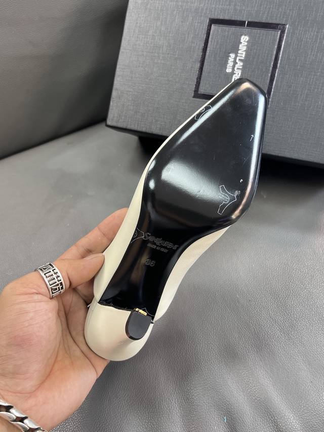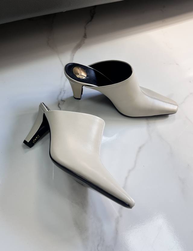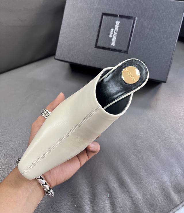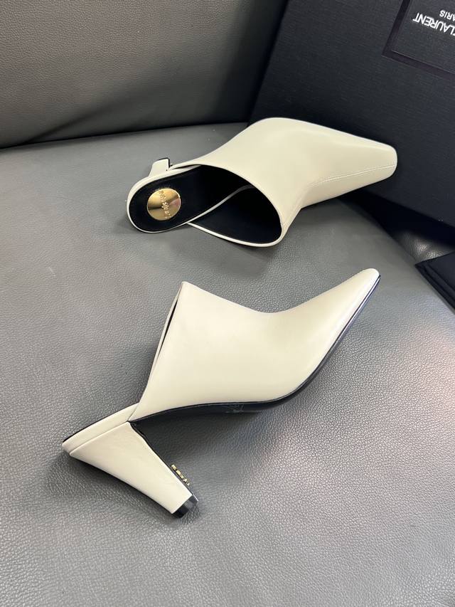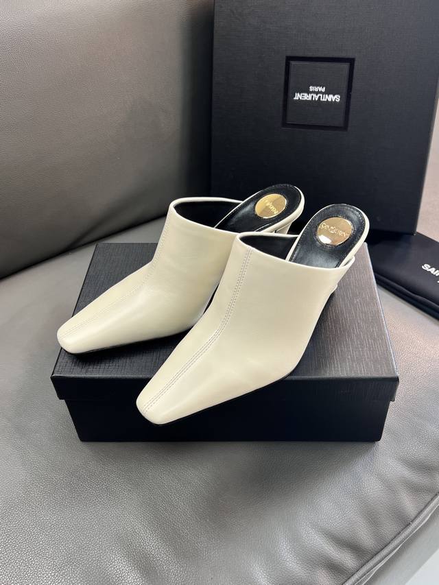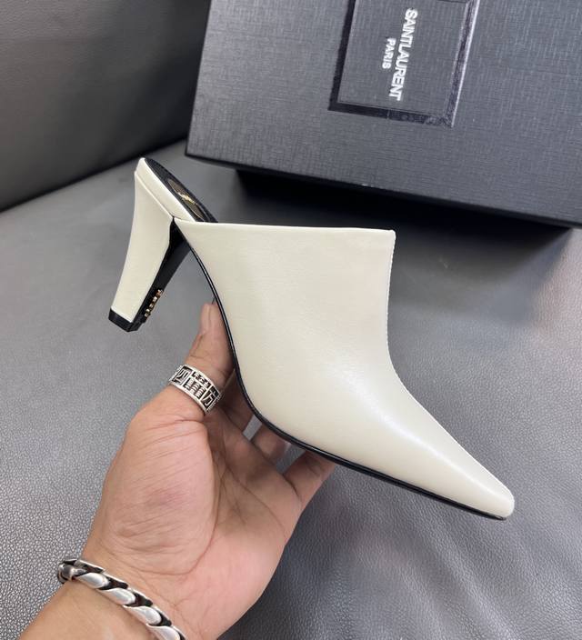 YSL Closed-Toe Slippers 25A High-Heeled Square Toe Saint Laurent New Sexy and Elegant Shoes Ddd This early autumn new style square-toe backless high-heeled closed-toe slippers are super flattering and make your feet look slimmer. They are incredibly comfortable and very versatile, highly recommended Ddd Upper: Lambskin upper with lambskin lining and insole; Sole: Italian genuine leather outsole; Heel height: 7.5 cm Ddd Size: 35-41 Leather upper Ddd