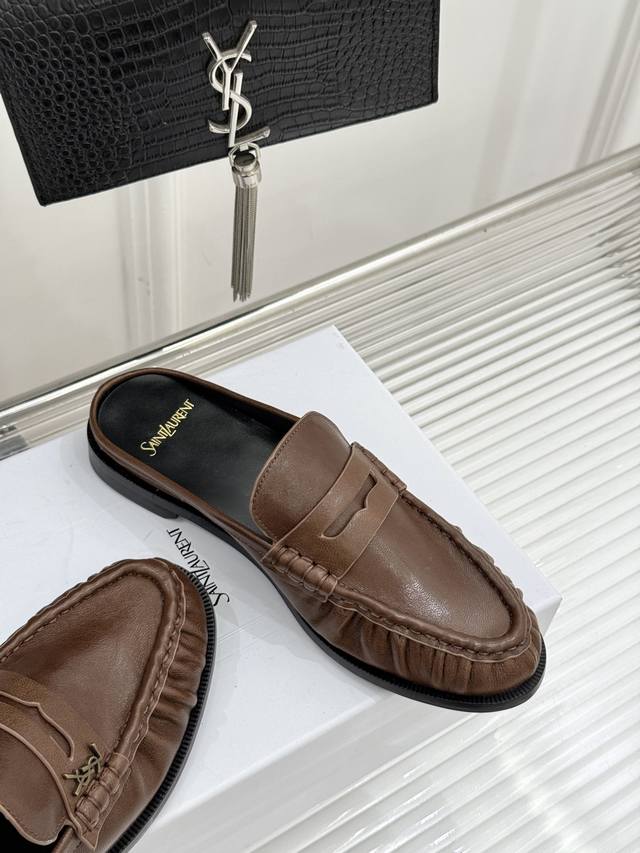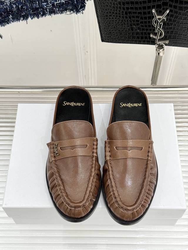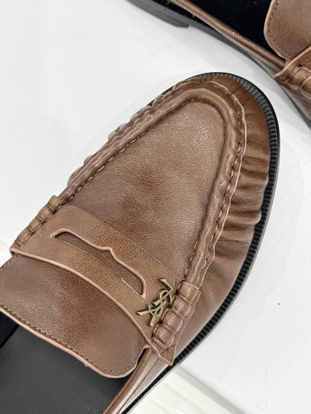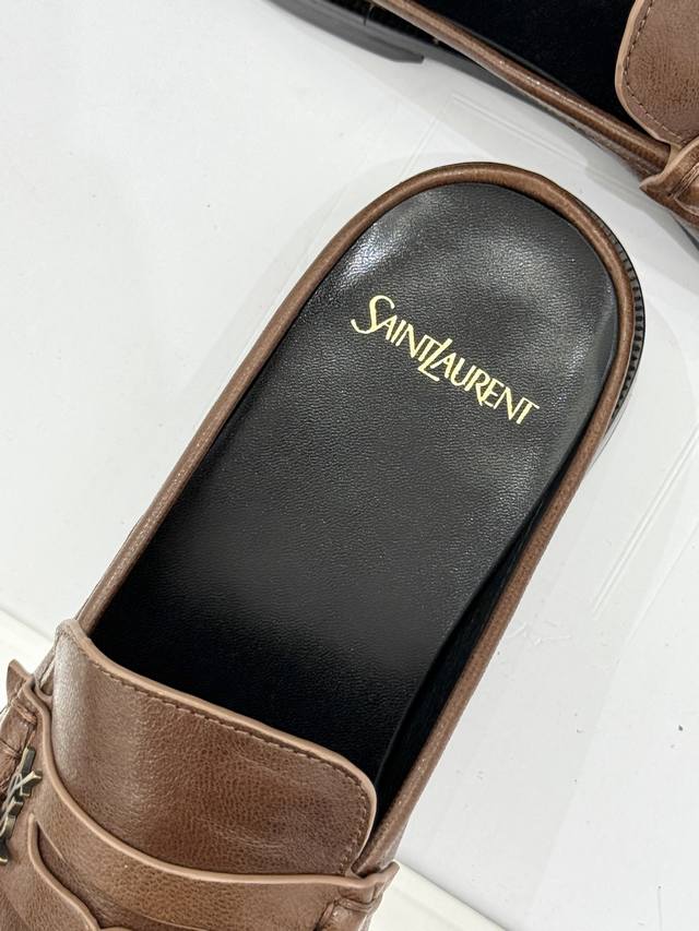Yves Saint Laurent's new loafer and slip-on shoe. The iconic small logo is the heart of this shoe. The classic almond-shaped toe cap cleverly adjusts to the foot shape. Easily adaptable to any style. Made from original custom leather . Lined with sheepskin. Made with genuine Italian leather. Sizes: 35-42 34, 40, 41 custom made]