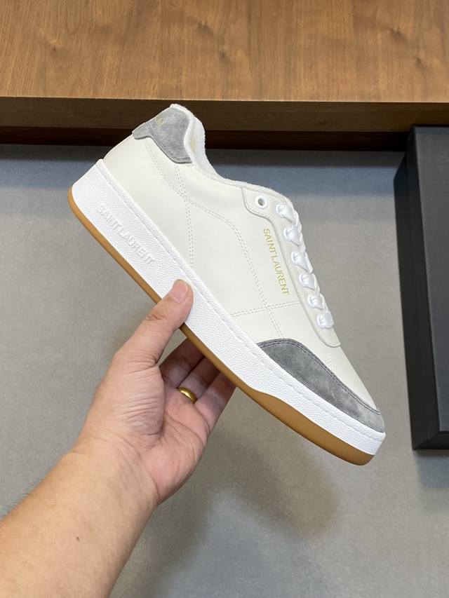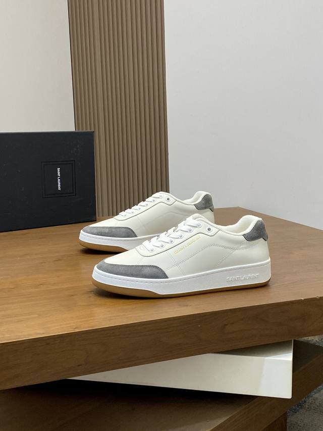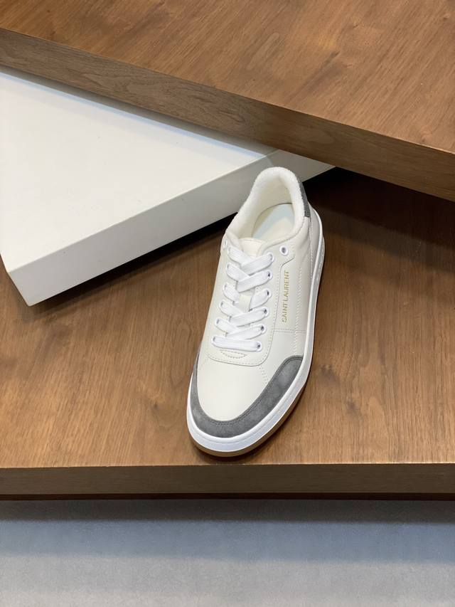 Couple Style Saint Laurent Low-Top Lace-up Sneakers DDD S L61 Official Website New Arrival, Synchronized with Brand Flagship Store. Features Italian raw grain cowhide leather with perforated leather accents on the front, a gold Saint Laurent logo on the pull tab, an Sl 61 logo on the side, and an embossed Saint Laurent logo on the heel. The interior is lined with soft terry cloth for enhanced softness, breathability, and support. No midsole last, plus a memory foam insole for unparalleled comfort and lightweight feel. The eco-friendly, non-slip rubber two-tone outsole with genuine stitching around the perimeter further enhances comfort and durability. Perfect details speak for themselves! DDD Sizes: Women's 35-39, 40, 41 (custom made), Men's 38-45! Original box packaging + dust bag DDD