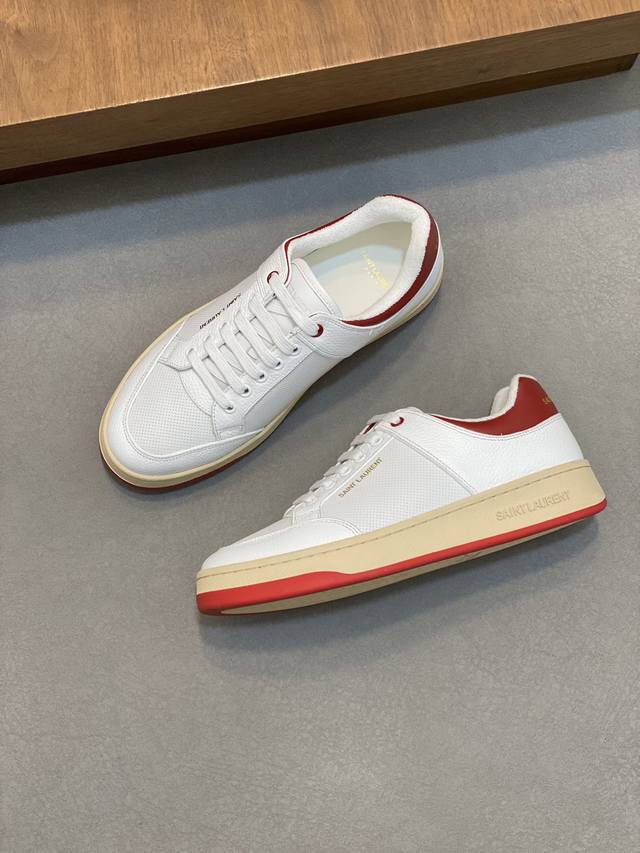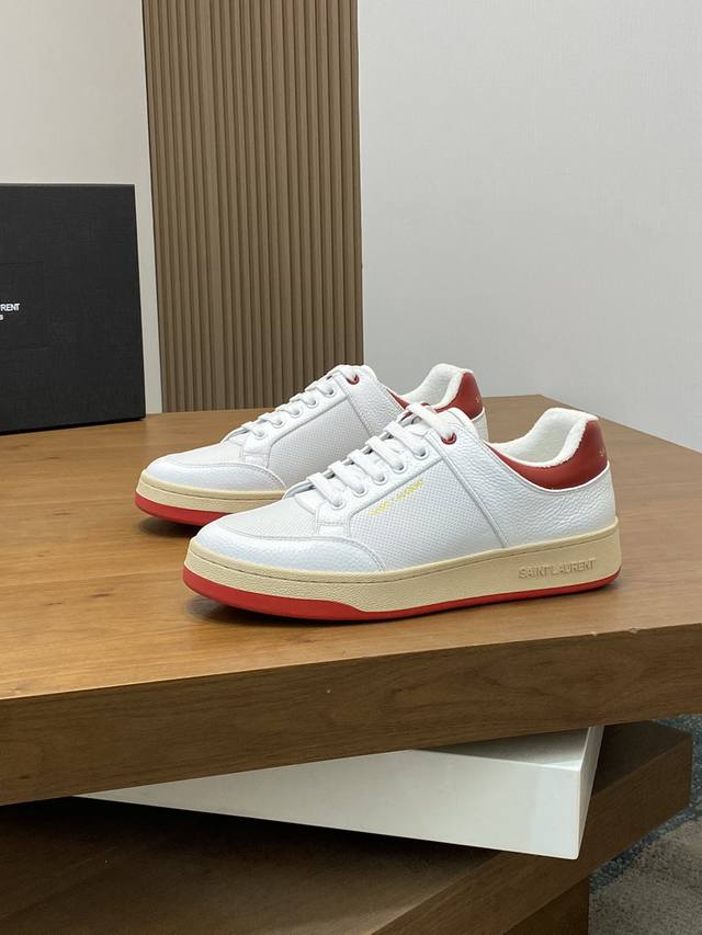 Couple Style Saint Laurent Low-Top Lace-up Sneakers DDD S L61 Official Website New Arrival, Synchronized with Brand Flagship Store. Features Italian raw grain cowhide leather with perforated leather accents on the front, a gold Saint Laurent logo on the pull tab, an Sl 61 logo on the side, and an embossed Saint Laurent logo on the heel. The interior is lined with soft terry cloth for enhanced softness, breathability, and support. No midsole last, plus a memory foam insole for unparalleled comfort and lightweight feel. The eco-friendly, non-slip rubber two-tone outsole with genuine stitching around the perimeter further enhances comfort and durability. Perfect details speak for themselves! DDD Sizes: Women's 35-39, 40-41 (custom made), Men's 38-45! Original box packaging + dust bag DDD