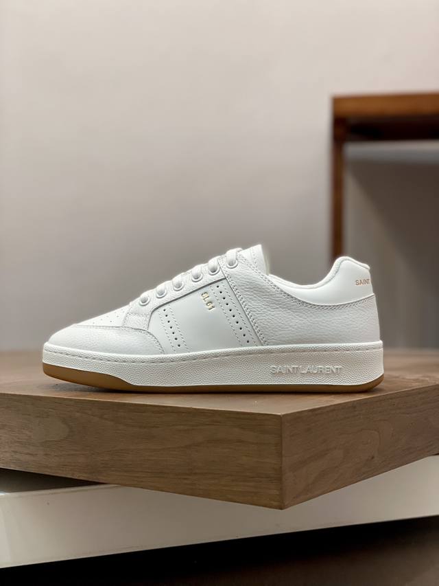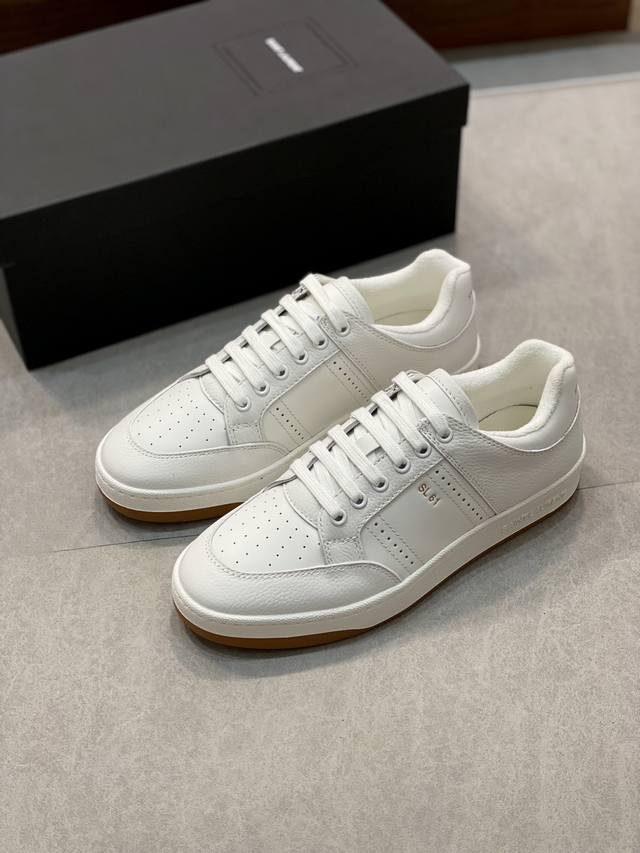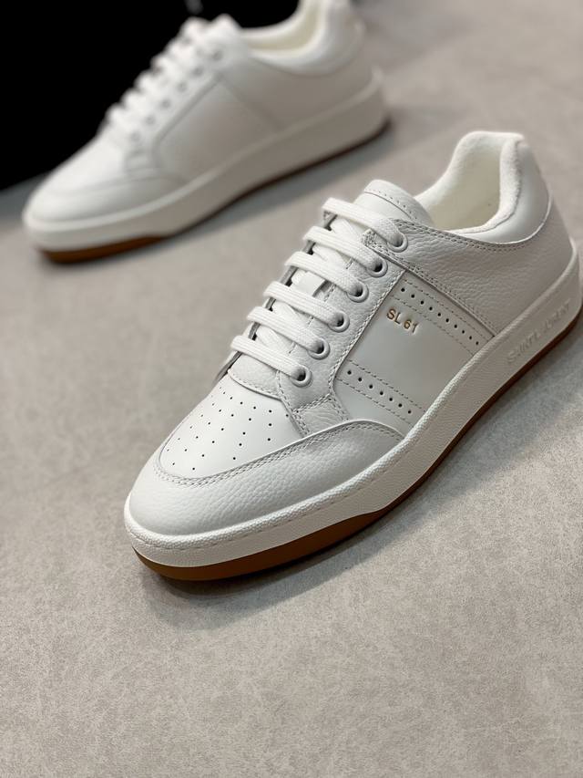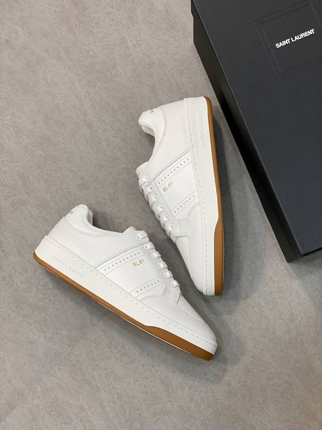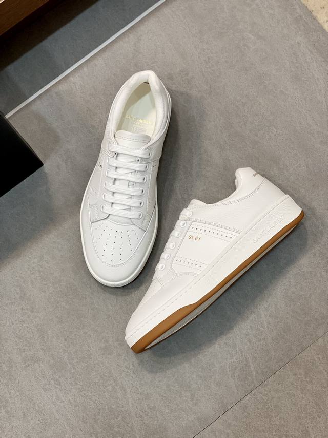 Couple Style Saint Laurent Low-Top Lace-up Sneakers DDD S L61 Official Website New Arrival, Synchronized with Brand Flagship Store. Features Italian raw grain cowhide leather with perforated leather accents on the front, a gold Saint Laurent logo on the pull tab, an Sl 61 logo on the side, and an embossed Saint Laurent logo on the heel. The interior is lined with soft terry cloth for enhanced softness, breathability, and support. No midsole last, plus a memory foam insole for unparalleled comfort and lightweight feel. The eco-friendly, non-slip rubber two-tone outsole with genuine stitching around the perimeter further enhances comfort and durability. Perfect details speak for themselves! DDD Sizes: Women's 35-39, 40-41 (custom made), Men's 38-45! Original box packaging + dust bag DDD