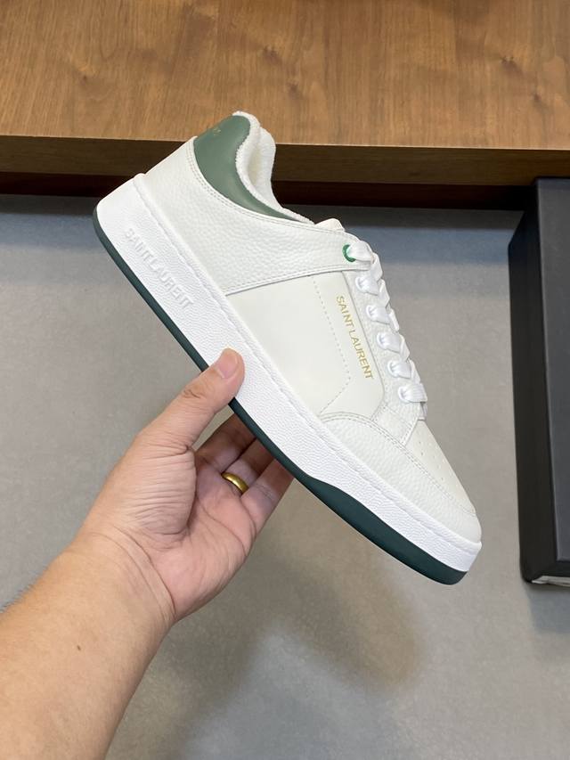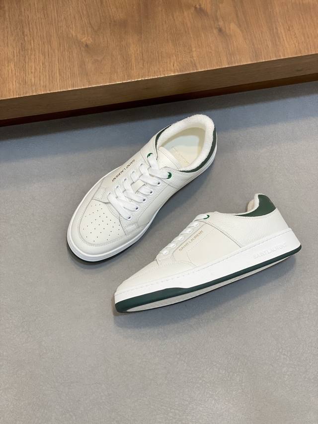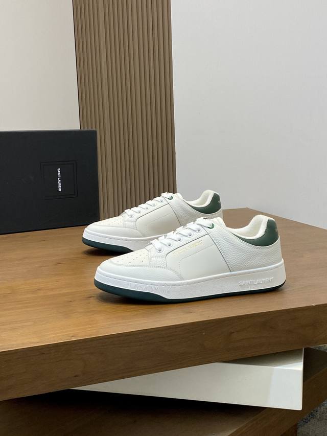 Couple Style Saint Laurent Low-Top Lace-up Sneakers DDD S L61 Official Website New Arrival, Synchronized with Brand Flagship Store. Features Italian raw grain cowhide leather with perforated leather accents on the front, a gold Saint Laurent logo on the pull tab, an Sl 61 logo on the side, and an embossed Saint Laurent logo on the heel. The interior is lined with soft terry cloth for enhanced softness, breathability, and support. No midsole last, plus a memory foam insole for unparalleled comfort and lightweight feel. The eco-friendly, non-slip rubber two-tone outsole with genuine stitching around the perimeter further enhances comfort and durability. Perfect details speak for themselves! DDD Sizes: Women's 35-39 40 41 (custom made), Men's 38-45! Original box packaging + dust bag DDD