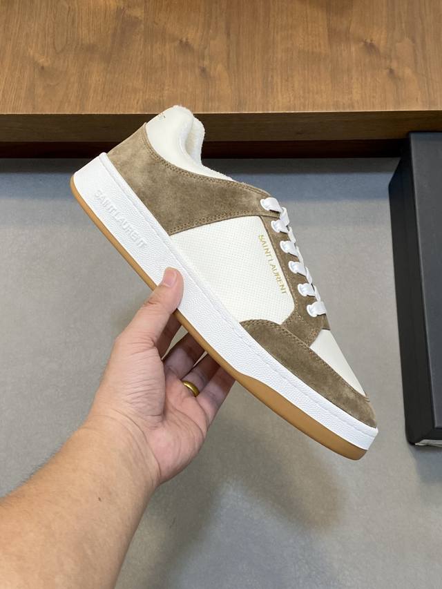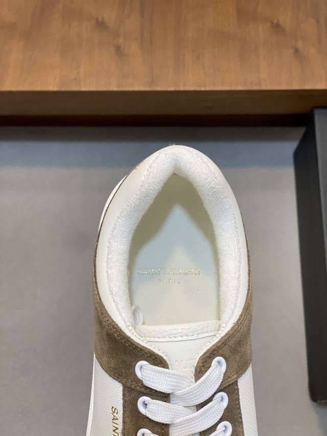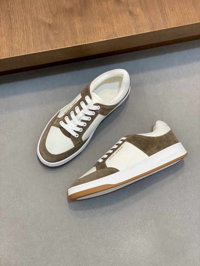 Couple Style Saint Laurent Low-Top Lace-up Sneakers DDD S L61 Official Website New Arrival, Synchronized with Brand Flagship Store. Features Italian raw grain cowhide leather with perforated leather accents on the front, a gold Saint Laurent logo on the pull tab, an Sl 61 logo on the side, and an embossed Saint Laurent logo on the heel. The interior is lined with soft terry cloth for enhanced softness, breathability, and support. No midsole last, plus a memory foam insole for unparalleled comfort and lightweight feel. The eco-friendly, non-slip rubber two-tone outsole with genuine stitching around the perimeter further enhances comfort and durability. Perfect details speak for themselves! DDD Sizes: Women's 35-39, 40-41 (custom made), Men's 38-45! Original box packaging + dust bag DDD