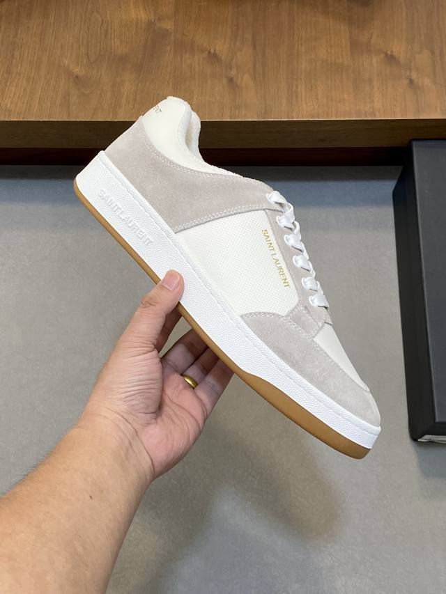 Couple Style Saint Laurent Low-Top Lace-up Sneakers DDD S L61 Official Website New Arrival, Synchronized with Brand Flagship Store. Features Italian raw grain cowhide leather with perforated leather accents on the front, a gold Saint Laurent logo on the pull tab, an Sl 61 logo on the side, and an embossed Saint Laurent logo on the heel. The interior is lined with soft terry cloth for enhanced softness, breathability, and support. No midsole last, plus a memory foam insole for unparalleled comfort and lightweight feel. The eco-friendly, non-slip rubber two-tone outsole with genuine stitching around the perimeter further enhances comfort and durability. Perfect details speak for themselves! DDD Sizes: Women's 35-39, 40-41 (custom made), Men's 38-45! Original box packaging + dust bag DDD