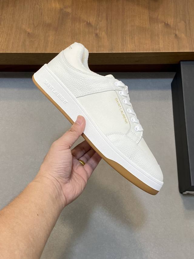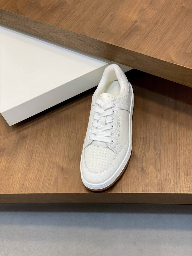 Couple Style Saint Laurent Low-Top Lace-up Sneakers DDD S L61 Official Website New Arrival, Synchronized with Brand Flagship Store. Features Italian raw grain cowhide leather with perforated leather accents on the front, a gold Saint Laurent logo on the pull tab, an Sl 61 logo on the side, and an embossed Saint Laurent logo on the heel. The interior is lined with soft terry cloth for enhanced softness, breathability, and support. No midsole last, plus a memory foam insole for unparalleled comfort and lightweight feel. The eco-friendly, non-slip rubber two-tone outsole with genuine stitching around the perimeter further enhances comfort and durability. Perfect details speak for themselves! DDD Sizes: Women's 35-39, 40-41 (custom made), Men's 38-45! Original box packaging + dust bag DDD