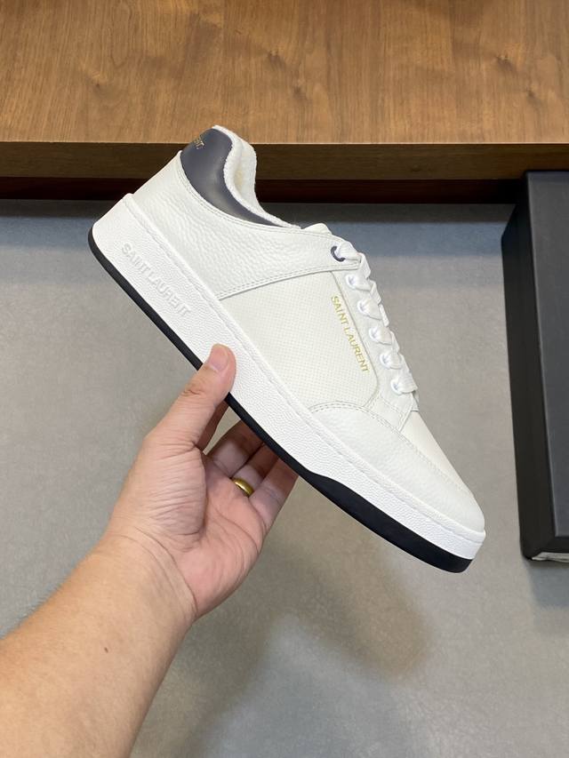 Couple Style Saint Laurent Low-Top Lace-up Sneakers DDD S L61 Official Website New Arrival, Synchronized with Brand Flagship Store. Features Italian raw grain cowhide leather with perforated leather accents on the front, a gold Saint Laurent logo on the pull tab, an Sl 61 logo on the side, and an embossed Saint Laurent logo on the heel. The interior is lined with soft terry cloth for enhanced softness, breathability, and support. No midsole last, plus a memory foam insole for unparalleled comfort and lightweight feel. The eco-friendly, non-slip rubber two-tone outsole with genuine stitching around the perimeter further enhances comfort and durability. Perfect details speak for themselves! DDD Sizes: Women's 35-39, 40-41 (custom made), Men's 38-45! Original box packaging + dust bag DDD