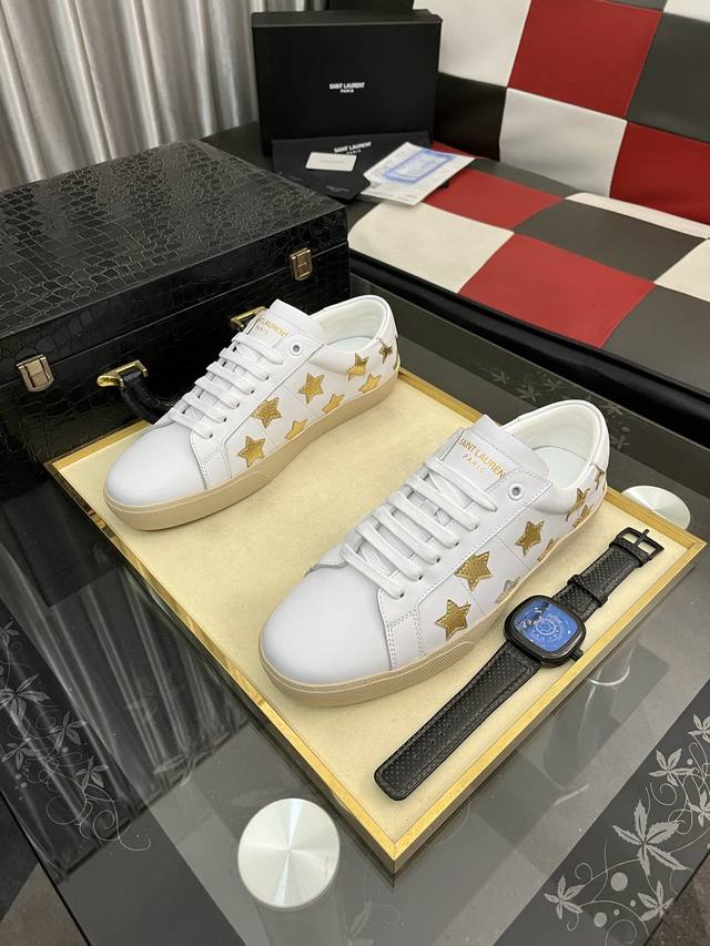 Factory Price (pp): Saint Laurent casual shoes, latest styles from boutiques all year round, YSL, classic and exquisite masterpiece, the hottest series in boutiques, combining elegant, fashionable, classic and timeless design, looks especially beautiful on the feet. Made with imported Italian cowhide lining and insole; sheepskin. Sizes: 38-442 colors available.
