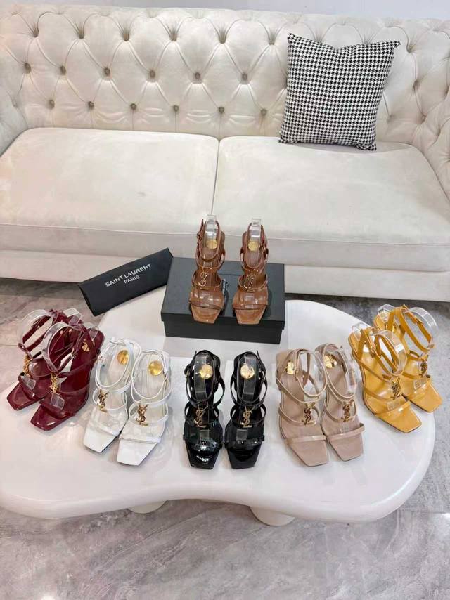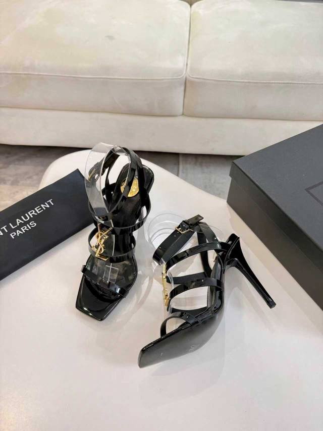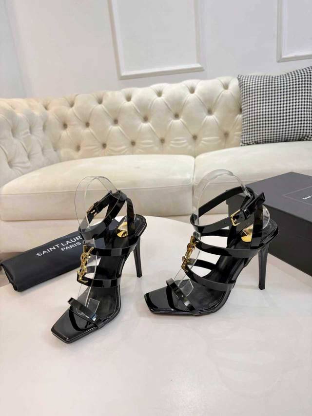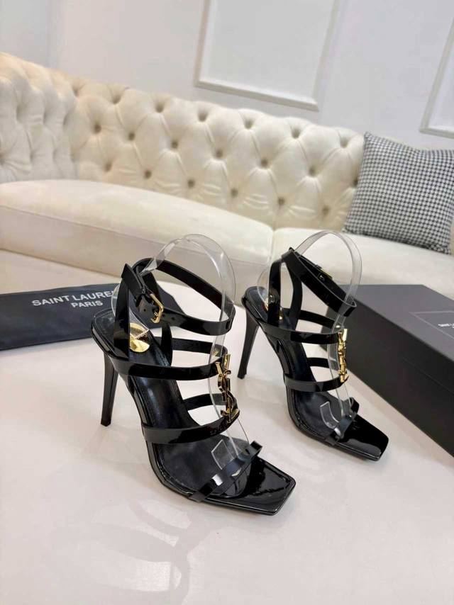 Factory price women's clothing, shoes, sportswear, original 2026 early spring new Saint Laurent YSL metal letter logo high-heeled sandals. YSL's beautiful high heels, Rose's same style, small square toe high heels, very flattering to the foot shape, luxurious metal YSL letter heel. In recent years, Slp has become increasingly understanding of women in high heels. Upper: Patent leather. Heel height approx.: 10.5cm. Sizes: 35-43, 35, 42, 43. Custom orders are non-refundable.