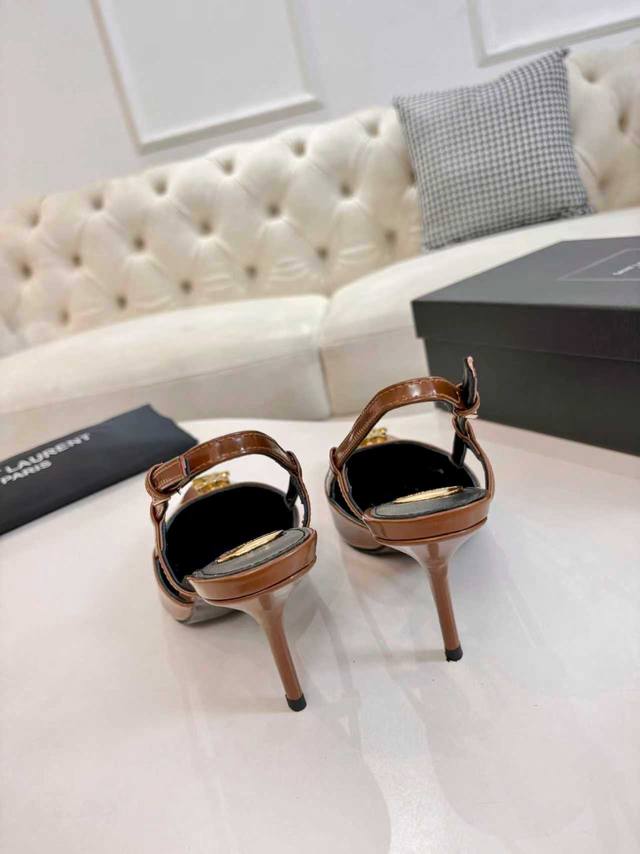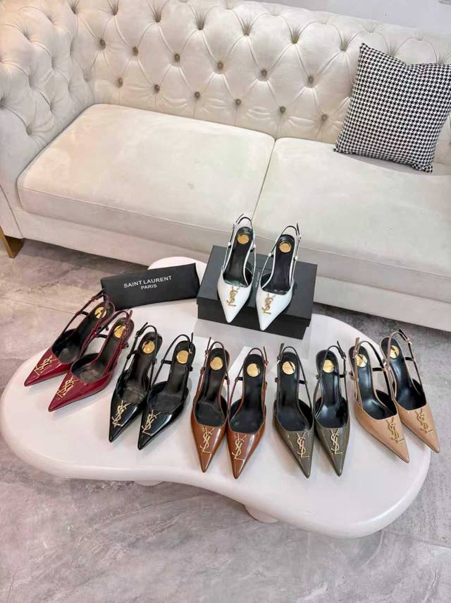 Factory price women's shoes sports original early spring new Saint Laurent YSL metal letter logo high-heeled sandals Ddd YSL's beautiful and charming high heels Rose's same style pointed high heels, which are very flattering to the foot shape. The luxurious metal YSL letter heel is a testament to how SLP understands women more and more in recent years. Ddd Upper: Open edge bead Ddd Heel height approx.: 8cm Ddd Sizes: 35-43, 35, 42, 43. Custom orders are non-refundable and non-exchangeable DDD