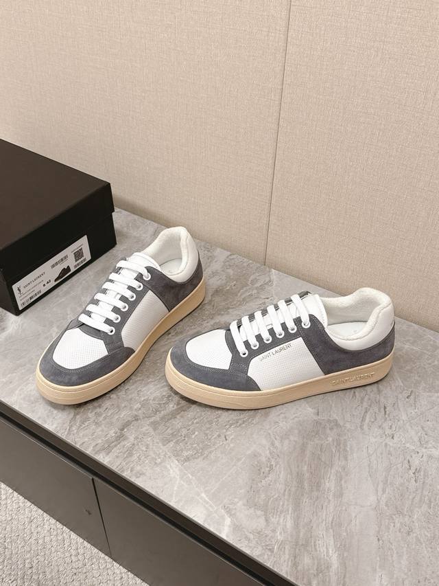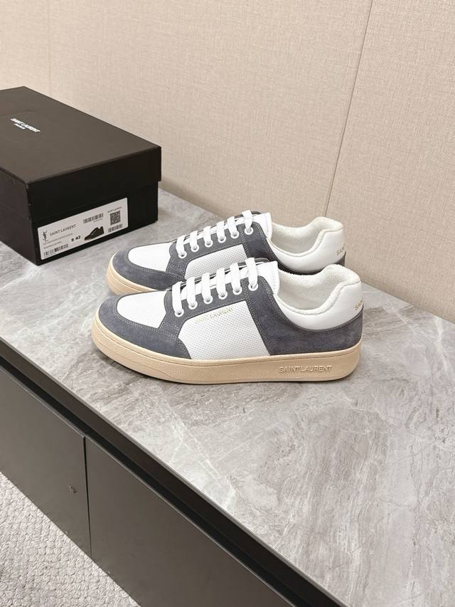 Men's Clothing 10 Saint Laurent's latest couple casual white sneakers, highly recommended by celebrities and fashion bloggers. The same style worn by Park Chae-young (Rose) features a simple, thick sole design with the YSL logo in gold on the outer side, making it highly recognizable and exuding a high-end feel. Simple and easy to match with jeans, skirts, or casual pants