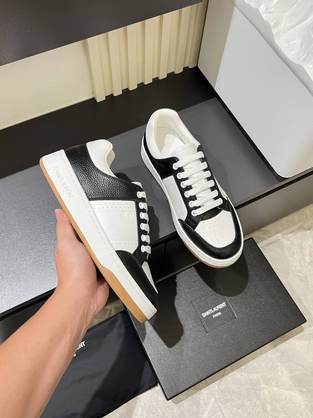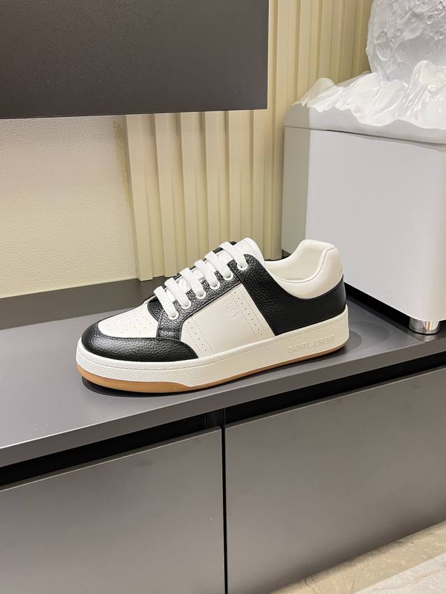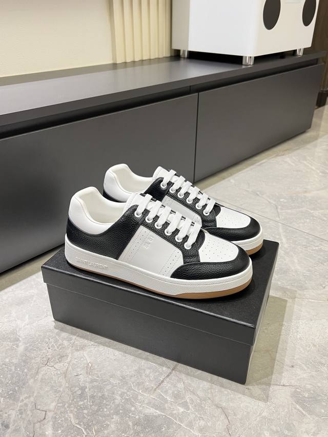 Saint Laurent - High-end quality original single-piece casual sports sneakers - Upper: Nappa calfskin with perforated technology, silver cowhide, shoe body, heel: silkscreened brand logo - Lining: water-dyed sheepskin lining, insole; water-dyed cowhide - Outsole: ultra-lightweight TPR rubber; two-tone molded outsole - Super high quality control and exquisite workmanship: highlighting high-end luxury - Size: 38-44, 45, 46 (custom sizes available)