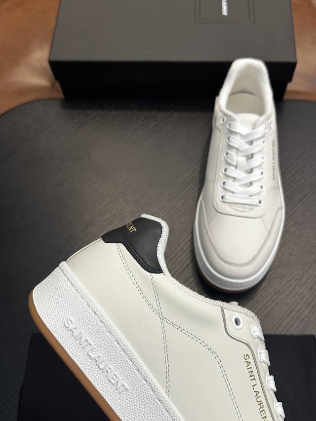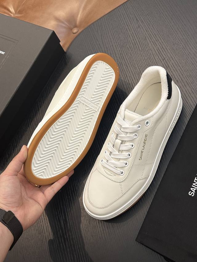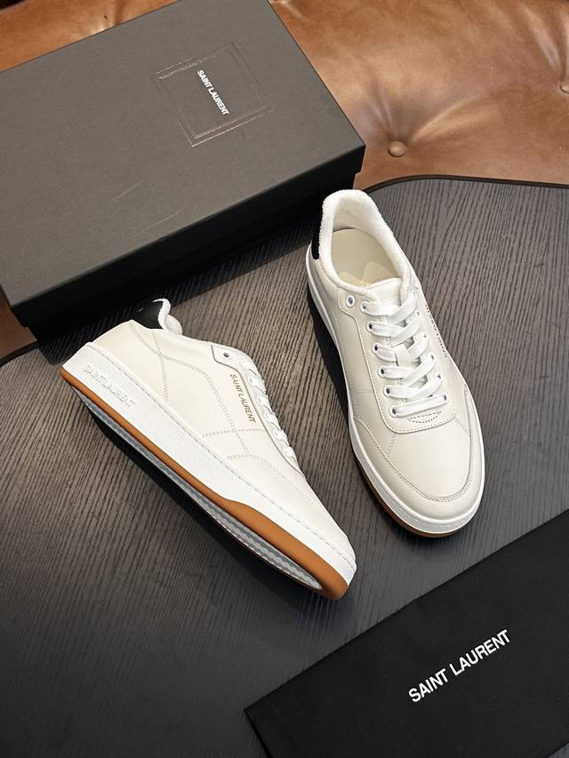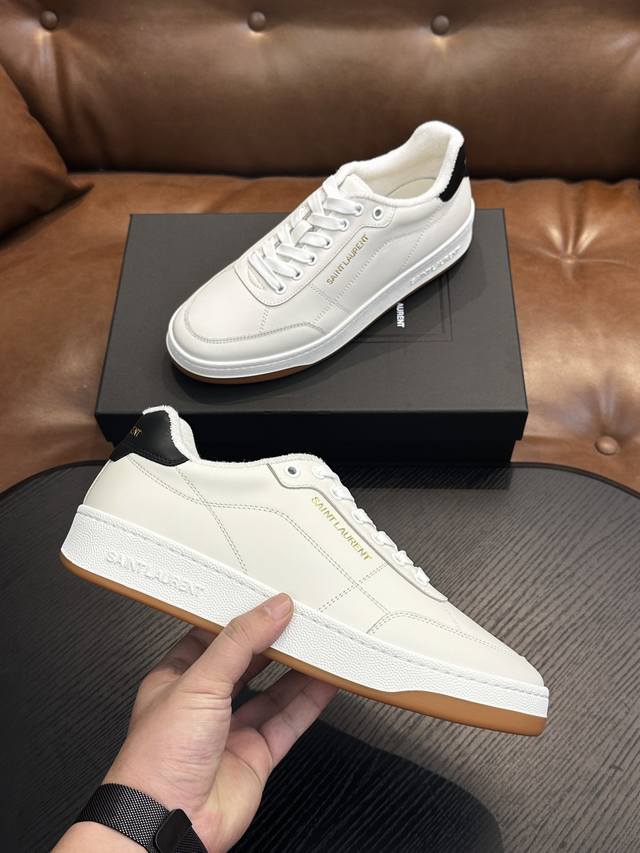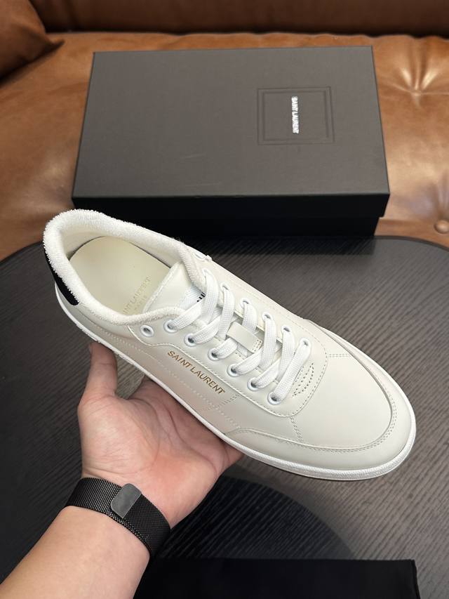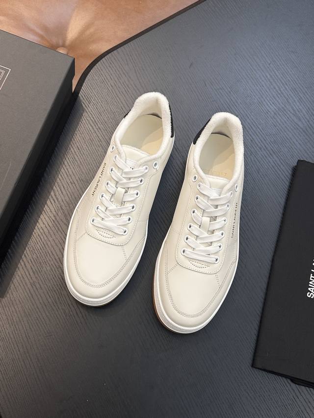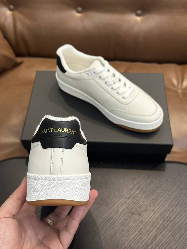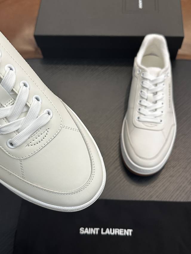 Saint Laurent Low-Top Lace-up Sneakers DDD S L61, new model from the official website and brand flagship store, featuring Italian raw grain cowhide leather with perforated leather accents on the front, a gold Saint Laurent logo on the pull tab, an Sl 61 logo on the side, and an embossed Saint Laurent logo on the heel. The interior is lined with soft terry cloth for enhanced softness, breathability, and support. It features a no-midsole last design and a memory foam insole for unparalleled comfort and lightweight feel. The eco-friendly, non-slip rubber two-tone outsole with genuine stitching around the perimeter further enhances comfort and durability. Perfect details speak for themselves! DDD Sizes: 39 40 41 42 43 44 45 Item Number 091 DDD