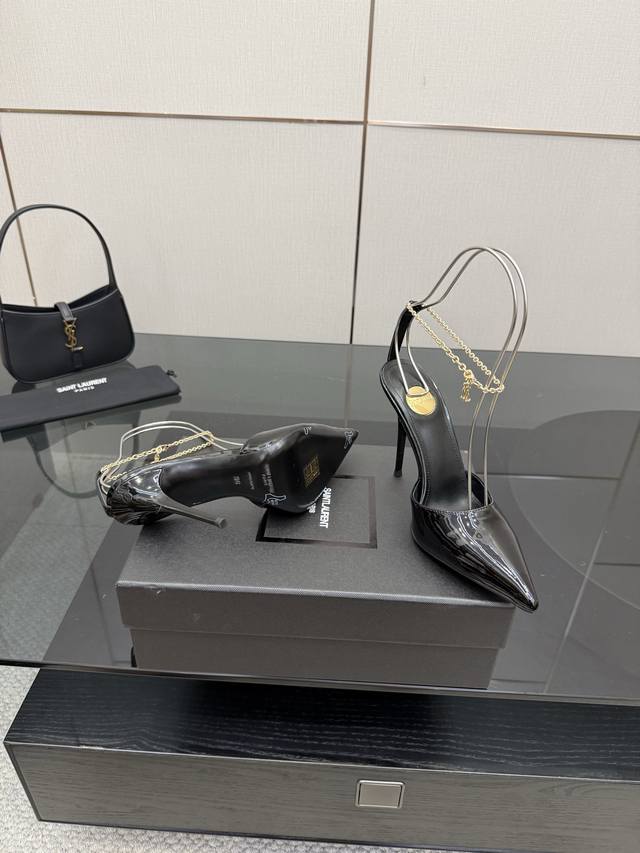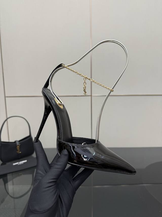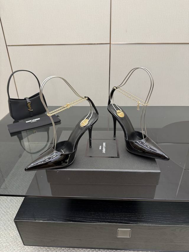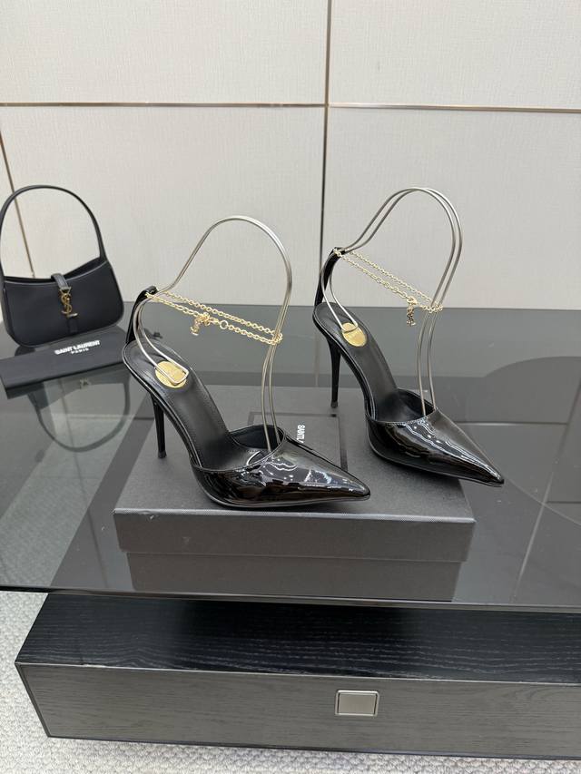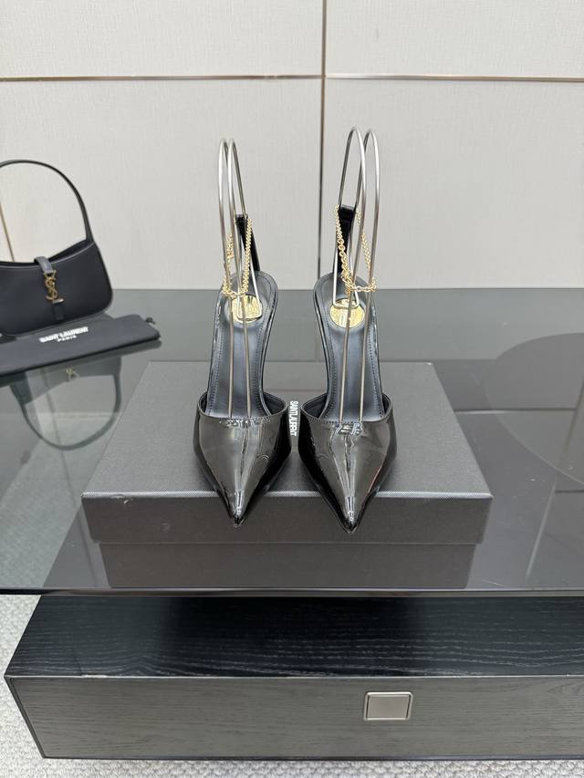 YSL Saint Laurent SS2025 New Metal Toe Elegant and Stylish High-Heeled Sandals! A brand new Spring/Summer collection of metal chain high-heeled sandals! Pointed-toe high-heeled mules